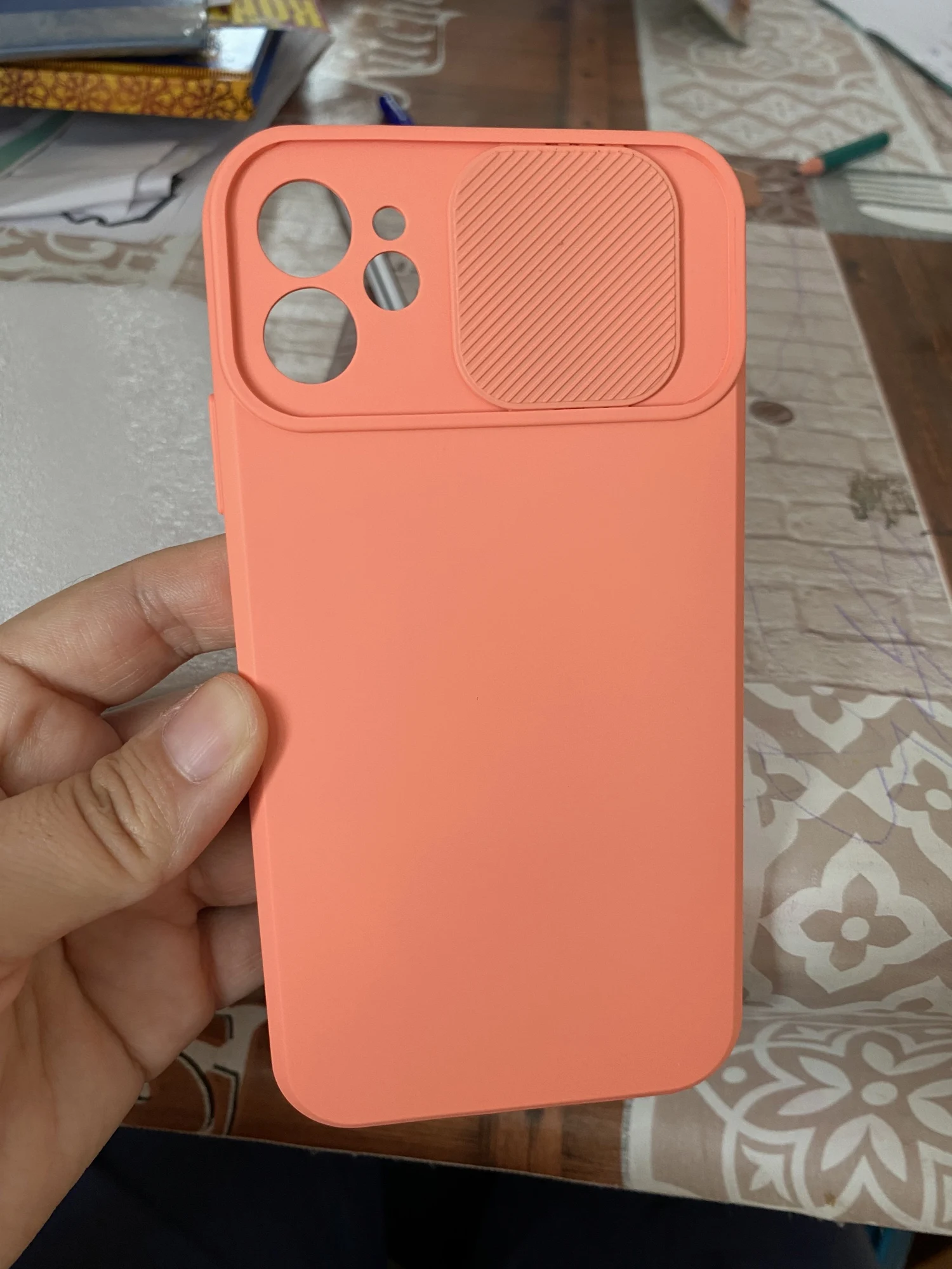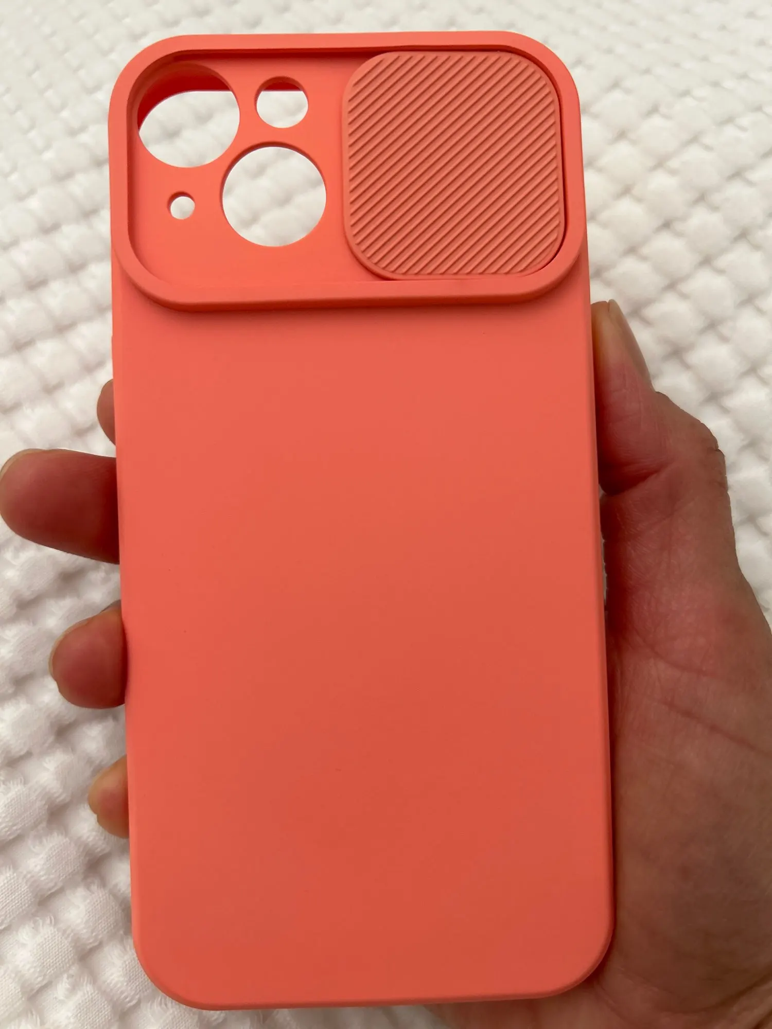 Доброго дня, товар відповідає опису , приємний на дотик , Колір яскраво оранжевий , мені все подобається , єдиний нюанс задня кришка на камері туго опускається і піднімається , треба прикласти зусилля щоб відсунути її , думаю що не довго прослужить , але в цілому мені подобається рекомендую