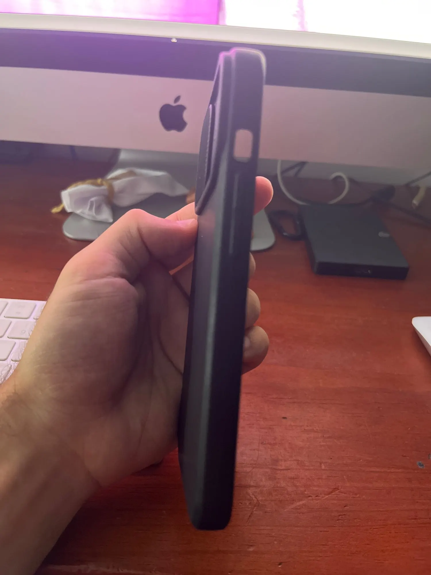 Очень яркий и красивый чехол. Плотно сидит на телефоне, настолько плотно что плохо работают кнопки) надеюсь со временем привыкну к этому. Сам чехол приятный на ощупь, но из-за этого материала он скользит в руках.