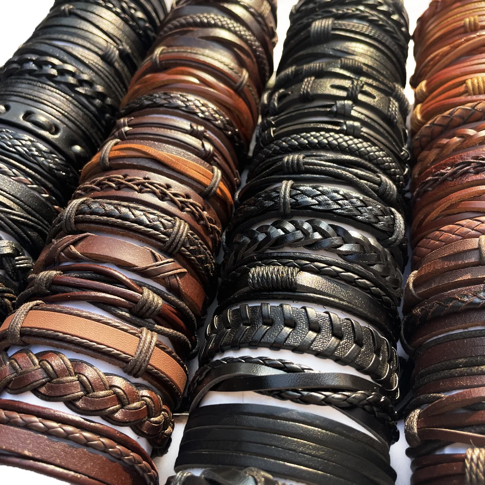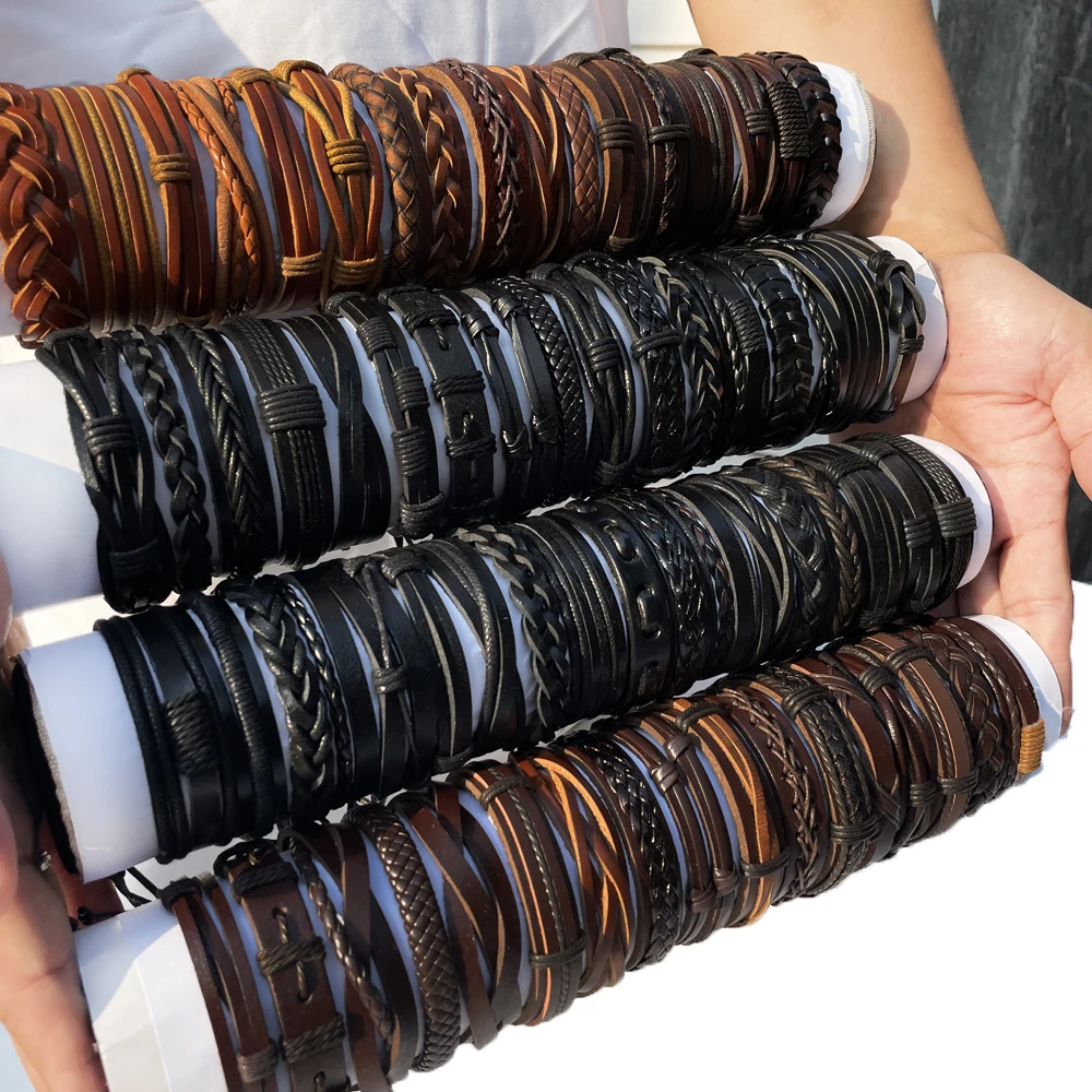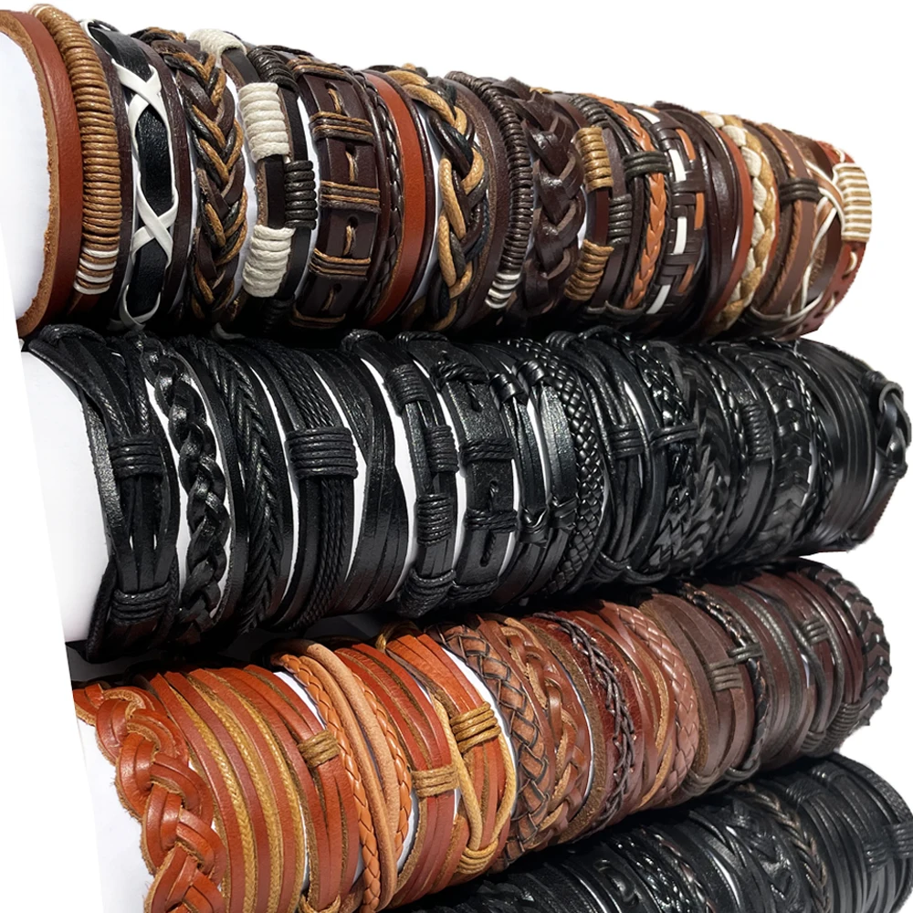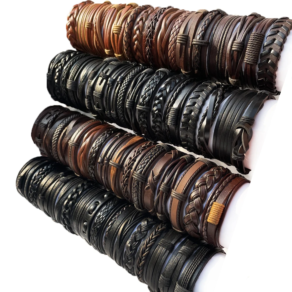 Модный Многослойный кожаный браслет в стиле ретро для мужчин и женщин, плетеный браслет ручной работы KE3, оптом, 50 шт.компл.