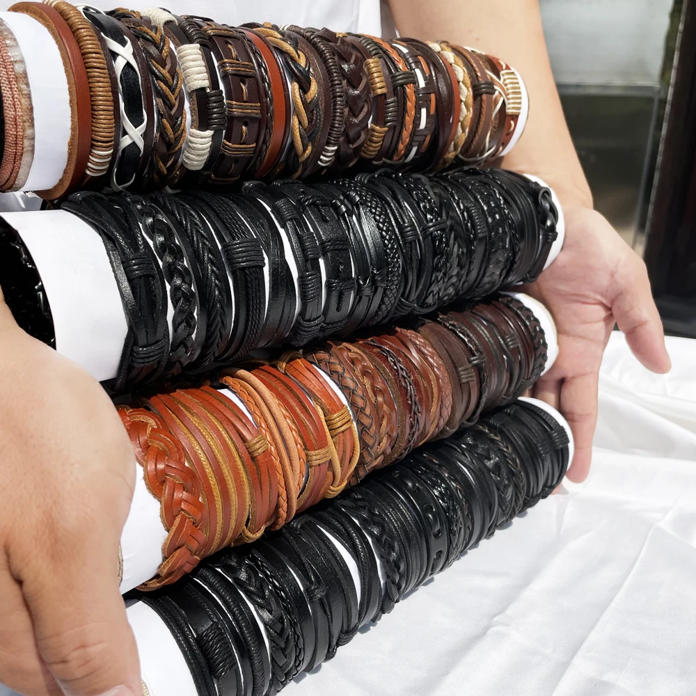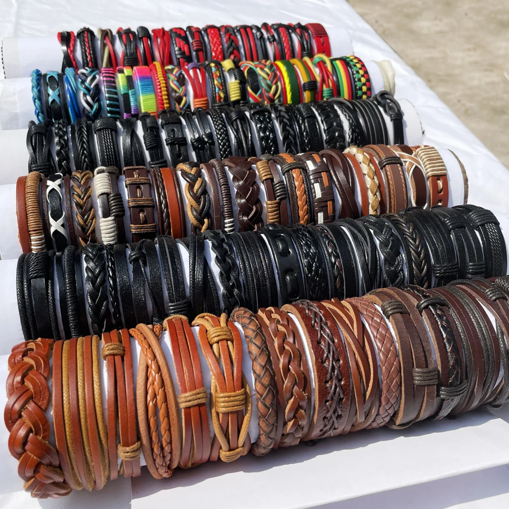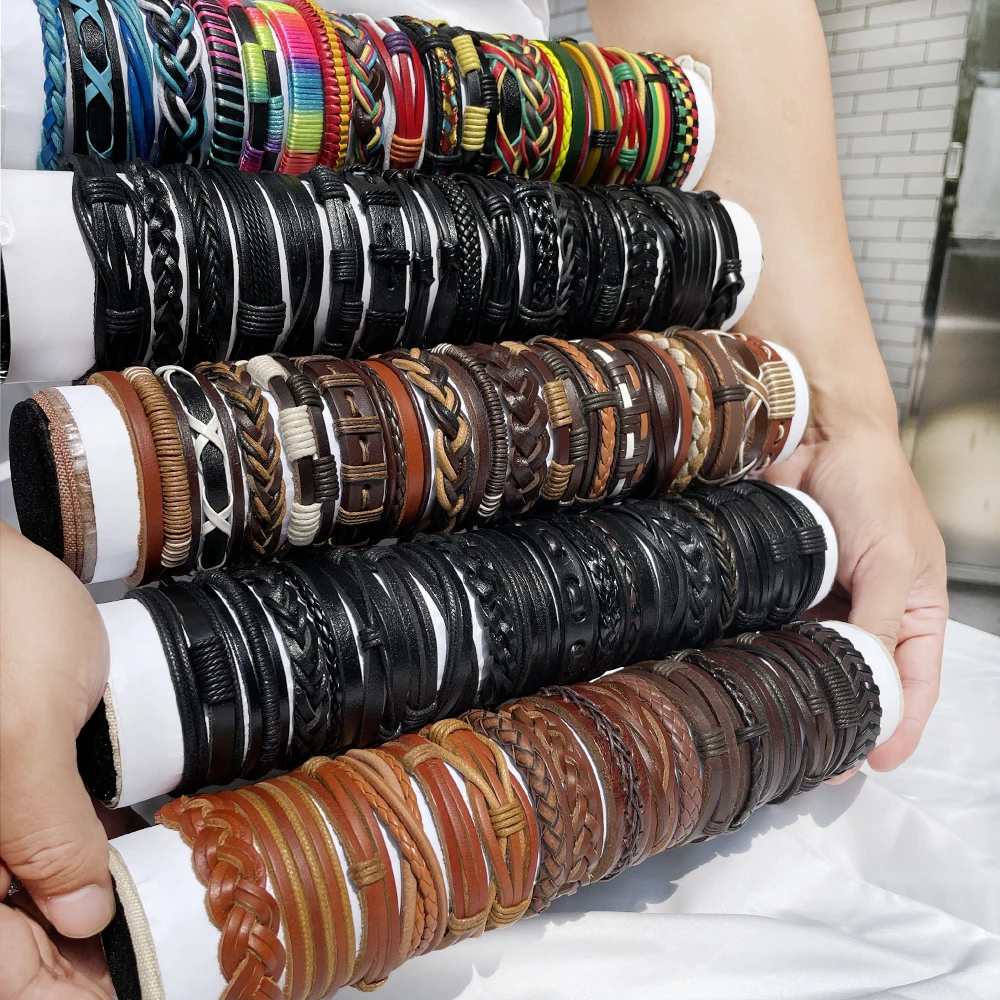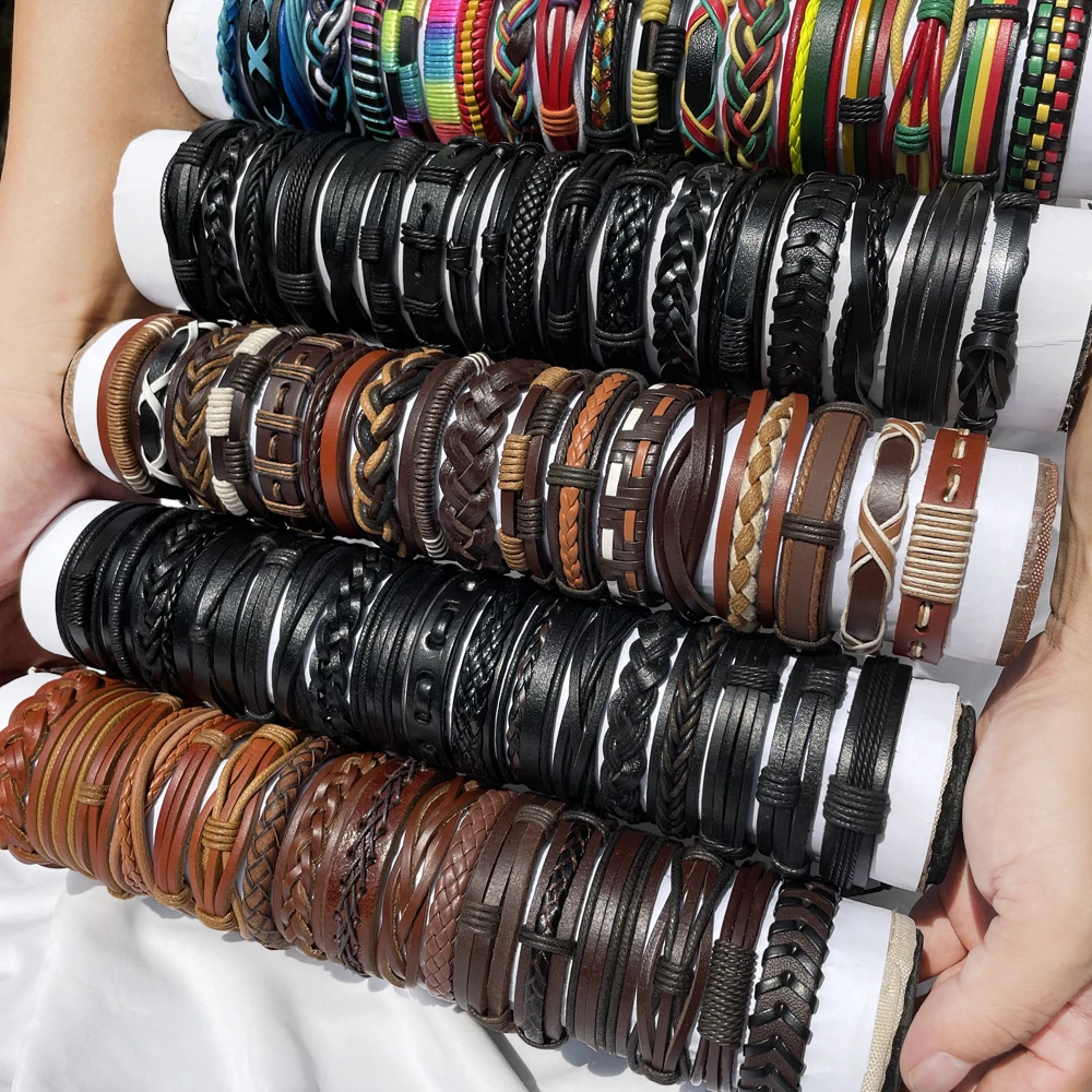 Модный Многослойный кожаный браслет в стиле ретро для мужчин и женщин, плетеный браслет ручной работы KE3, оптом, 50 шт.компл.