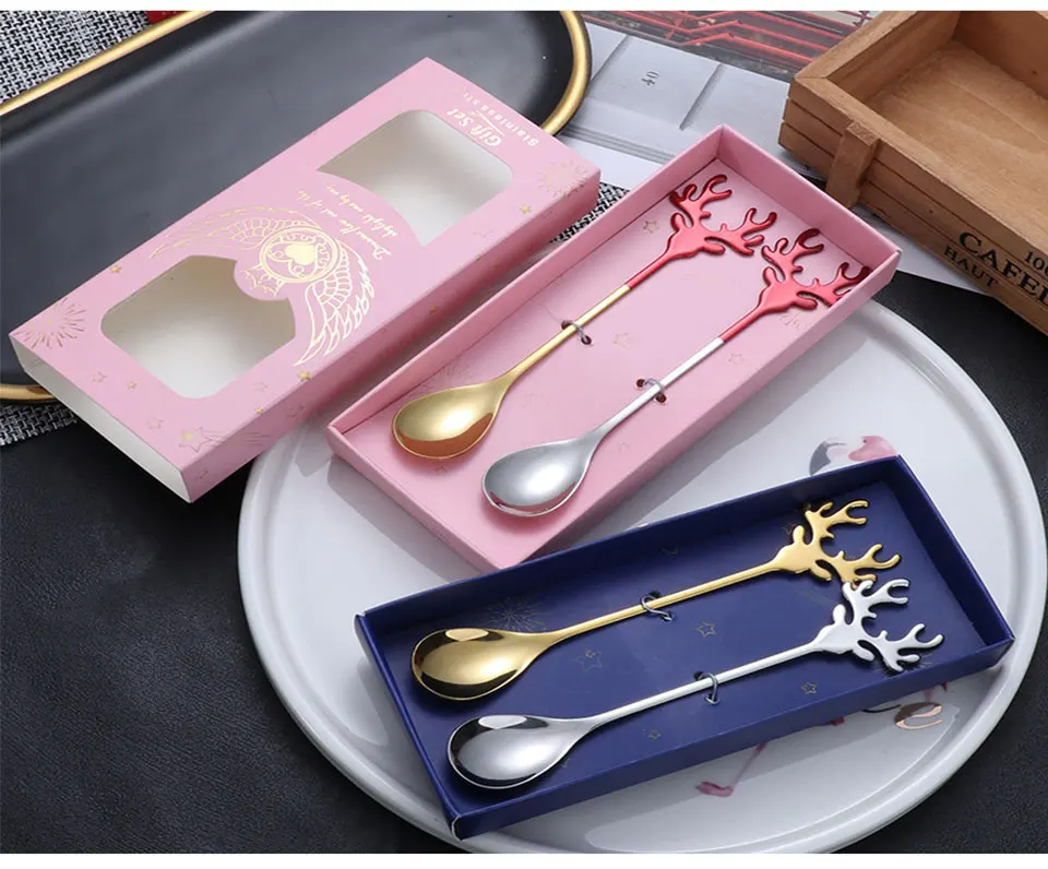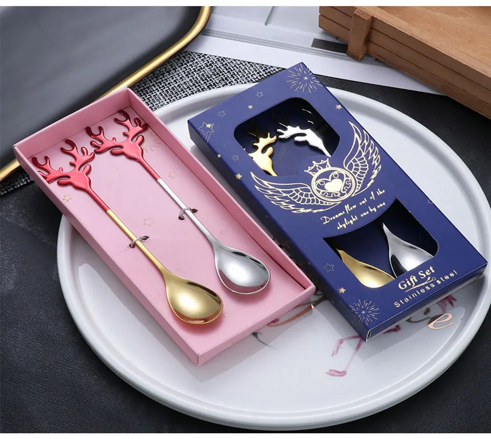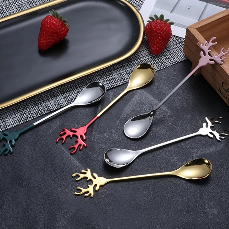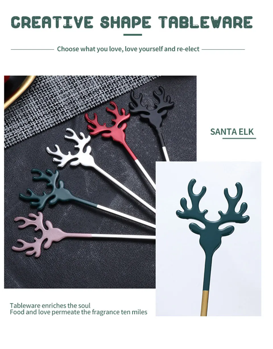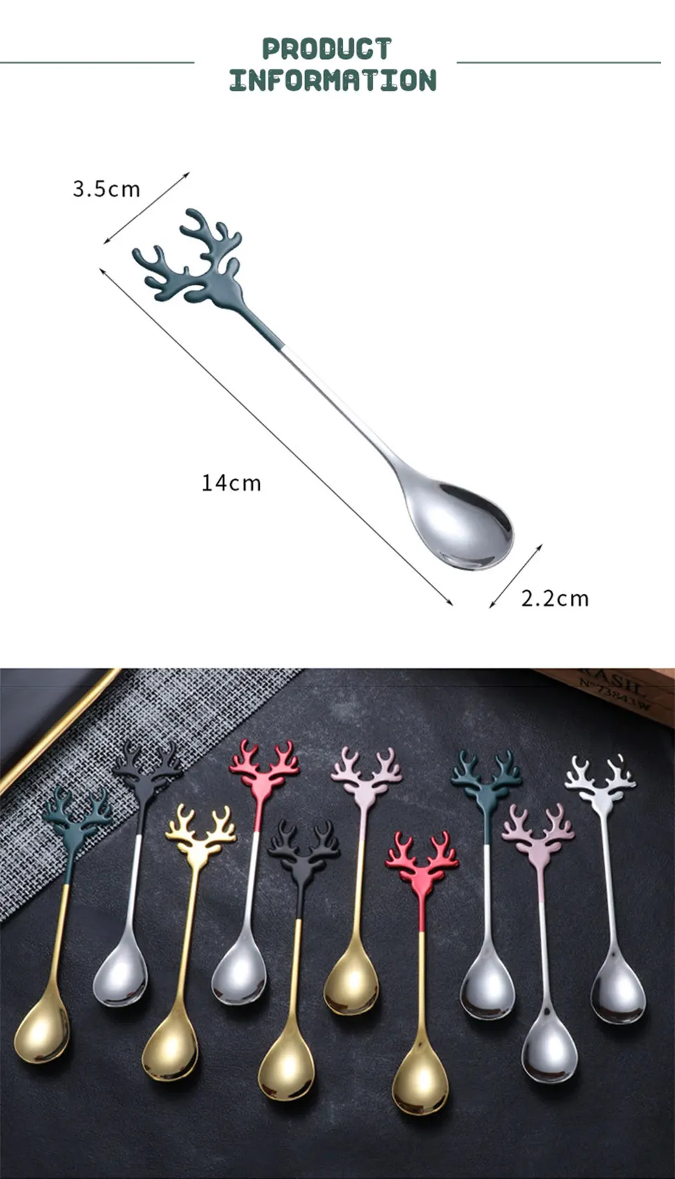 Ложка из нержавеющей стали в форме головы оленя, романтичная Рождес...
