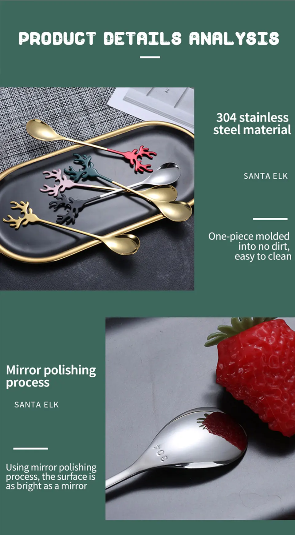 Рождественская ложка из нержавеющей стали, кухонная посуда, дизайнерская ложка для смешивания кофе, декор для рождественской вечеринки