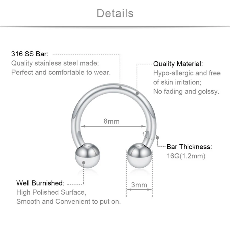 4 шт.перегородка из нержавеющей стали пирсинг для носа кольцо в стиле панк обруч Пирсинг для уха завитка бровей губ серьги ювелирные изделия для тела