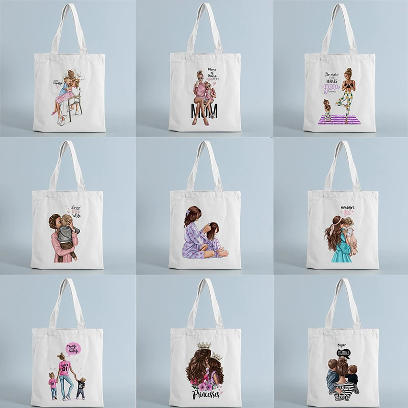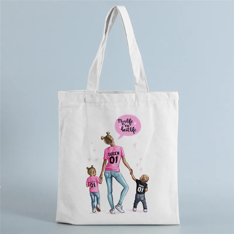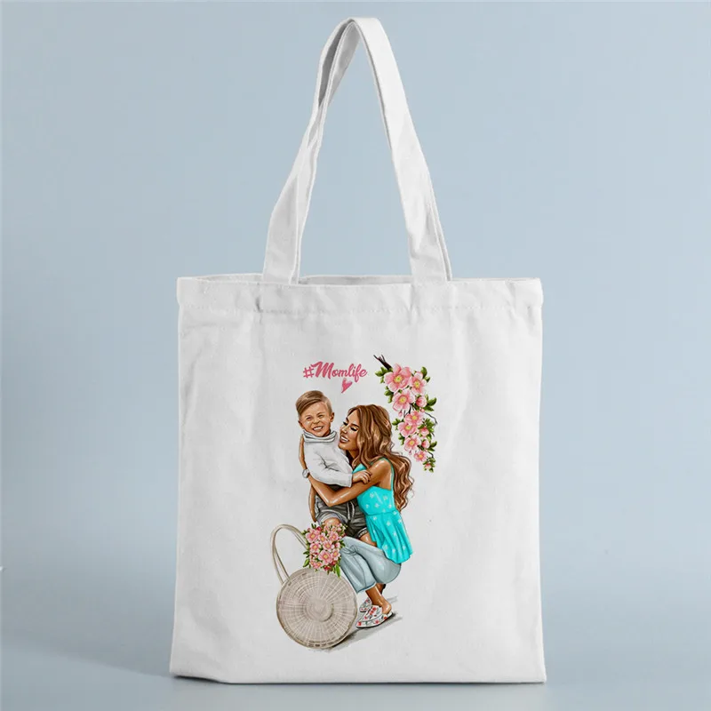 Холщовая Сумка для покупок MOM Life, Женская тканевая Сумочка на плечо, эко-сумка, тоут, многоразовые женские мешки для продуктов