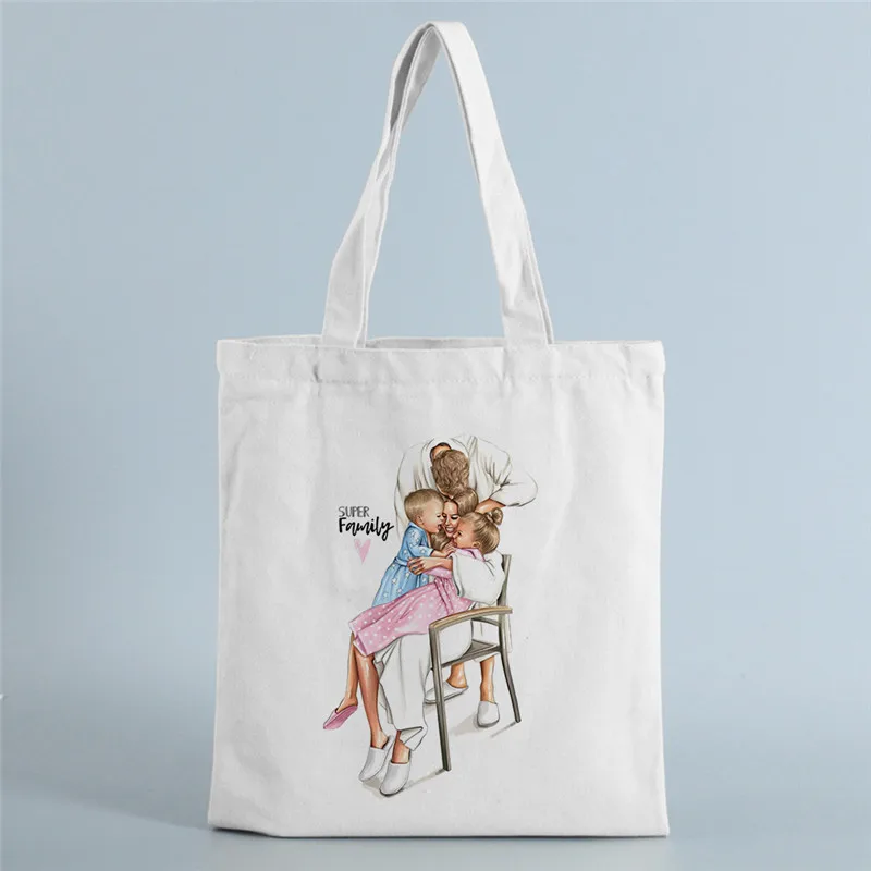 Холщовая Сумка для покупок с принтом Super Mom, повседневный многор...