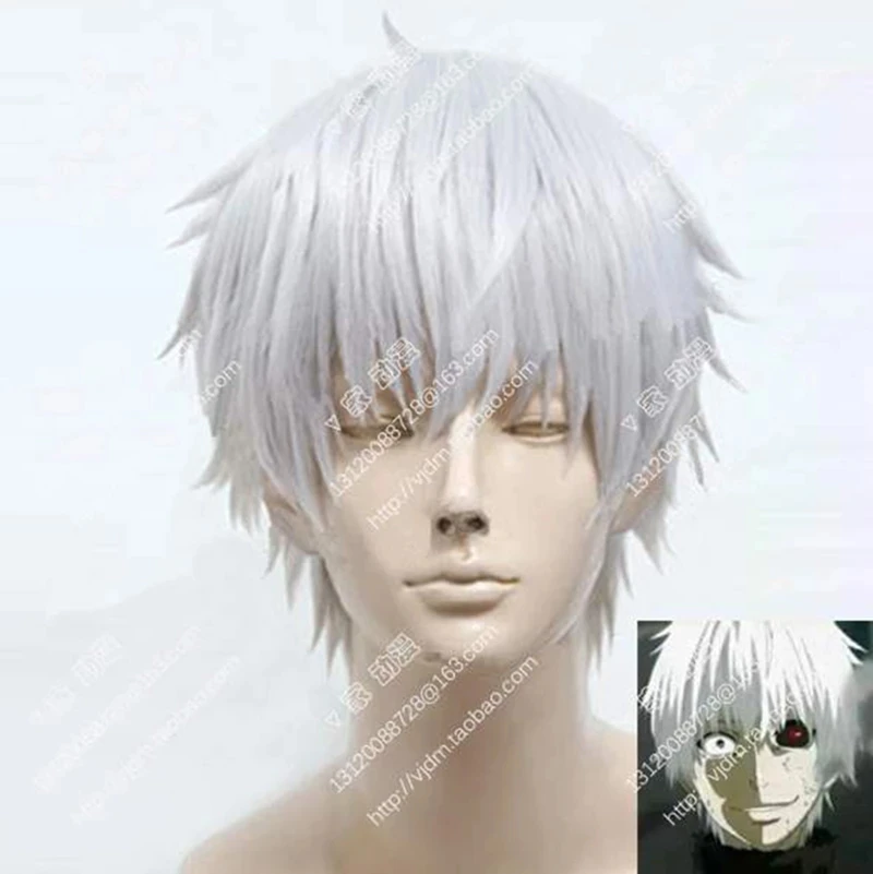 Горячая Распродажа, парик для косплея, Токийский Гуль канеки Кен, короткий, серебристо-белый, высокотемпературный, волоконно-Волоконный волос, карнавальный костюм, парик + Бесплатный парик