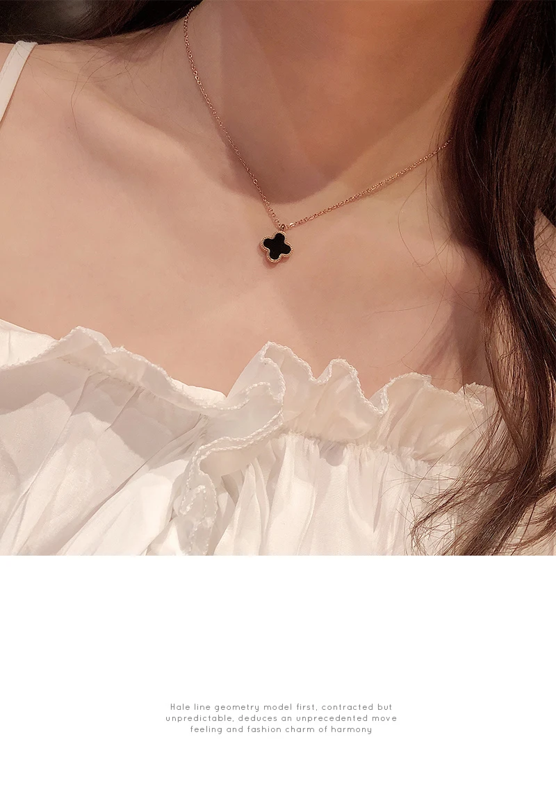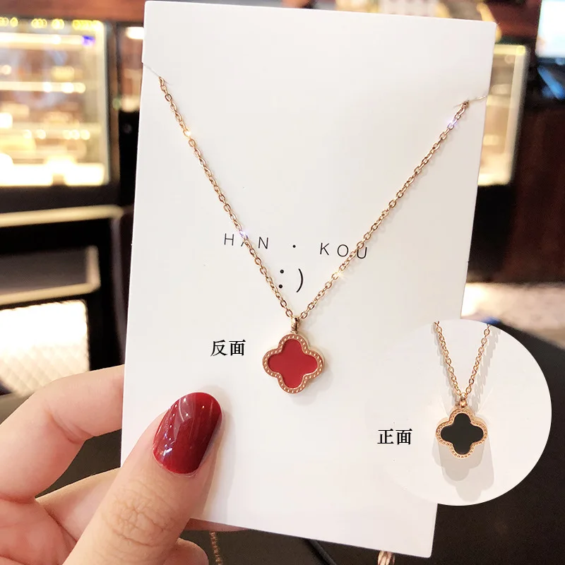 Двухстороннее ожерелье из титановой стали с четырехлистным клевером Женская цепочка до ключиц простой темпераментный индивидуальный Модный кулон