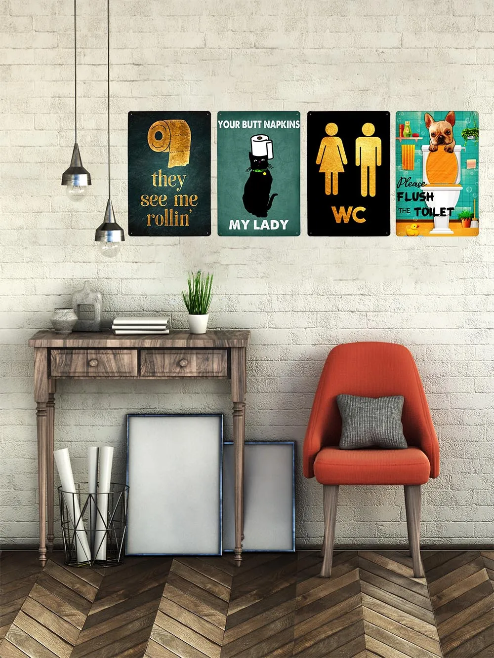 Металлический знак унитаза, направленный зубной налет, милая кошка, Забавный девиз, декор для туалета, ванной комнаты, табличка, картина, задник 20x30 см