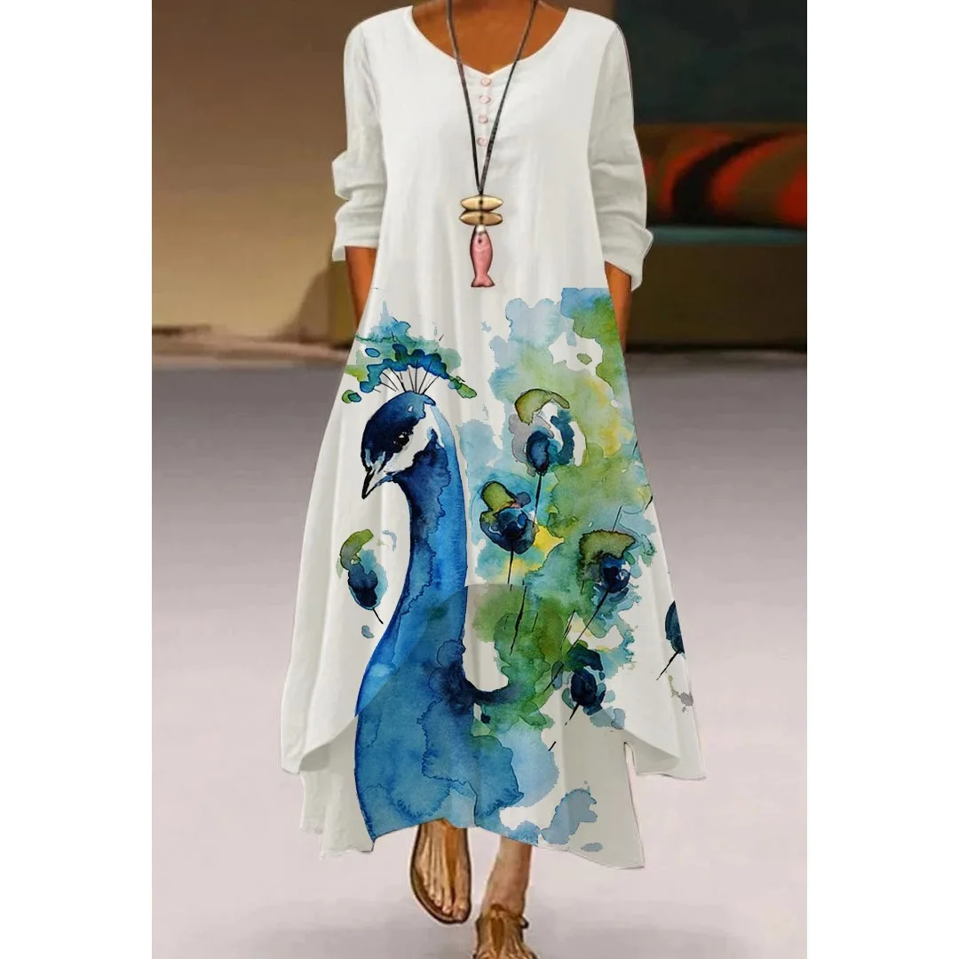 Длинные Платья-макси с принтом павлина, женское модное вечернее пла...