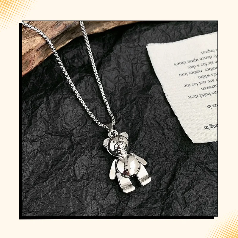 Ожерелье с подвижными конечностями медведь из титановой стали Аксессуары для прыжков подвеска на Свитер Цепочка ювелирные изделия подвеска ожерелье