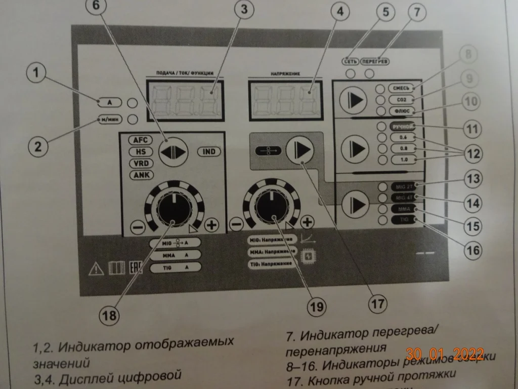 Заказ получен согласно даты доставки, курьером. Аппарат пришел с помятой крышкой подающего проволоку блока ( на фото видно). Аппарат включается, проволока подаётся. Варить не пробовал, буду ждать весны. В руководстве по эксплуатации фото других аппаратов ( см. фото ниже).