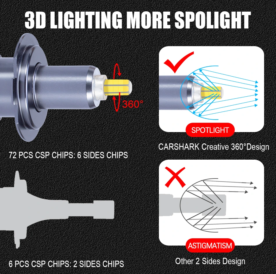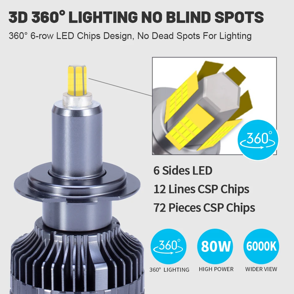 Светодиодные фары Carshark 360 H7 Canbus без ошибок H1 H8 H9 H11 автомобильная лампа Turbo CSP Hb3 Hb4 9012 Hir2 лампы Ice 9005 9006 Автомобильные фары