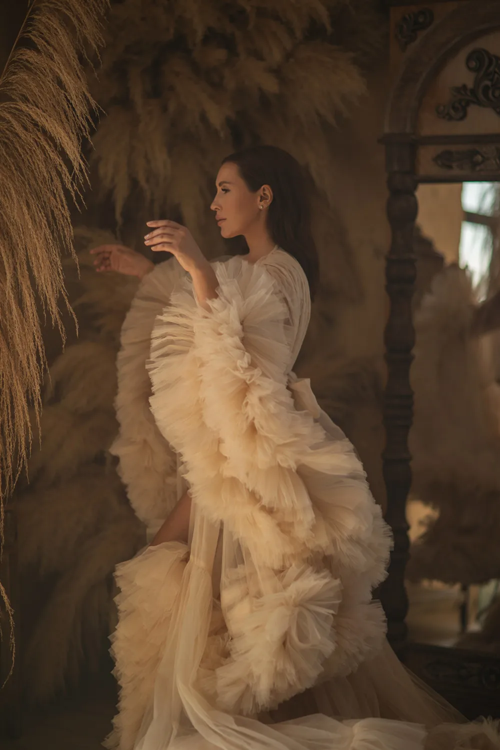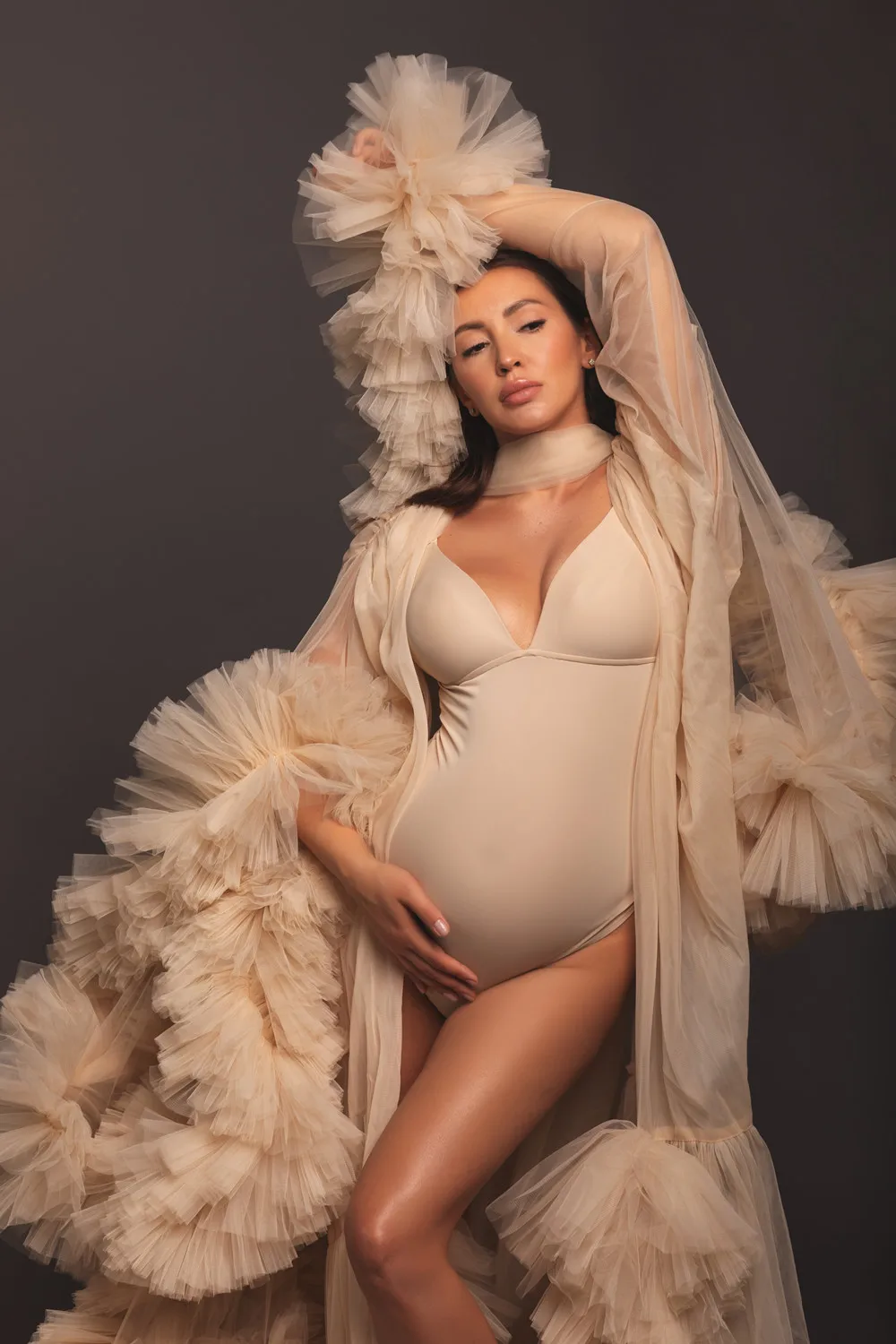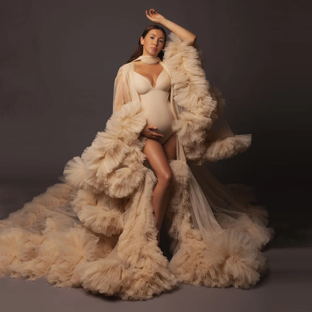 Шампанское Тюлевое платье для беременных для фотосессии женское платье для беременных с оборками пушистое Прозрачное платье для беременных для фотосъемки на заказ
