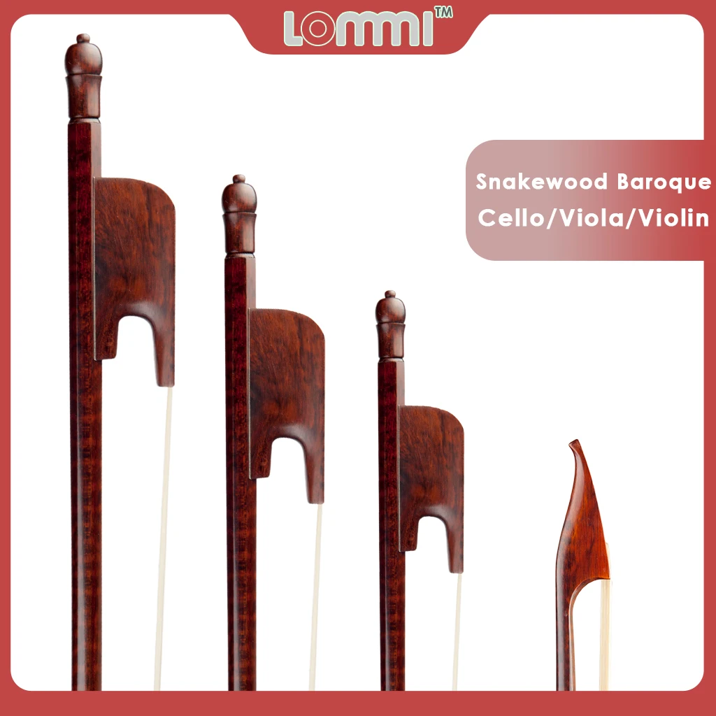 LOMMI 44 лук для скрипки из змеиной древесины в барочном стиле, натуральный лук, конский волос, классический стиль барокко, виолончель, луки
