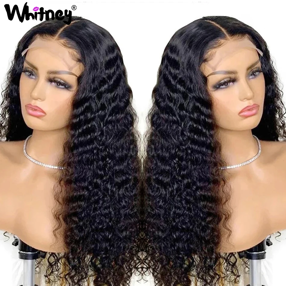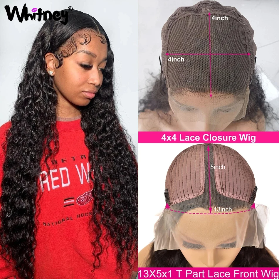 Индийские волосы глубокая волна человеческие волосы Кружева Закрытие парики для женщин средняя часть 4x4 кружева закрытие парик вода вьющиеся Т-часть кружева передний парик