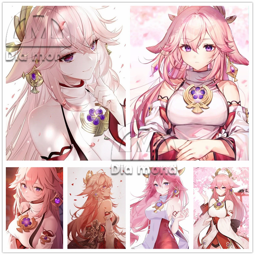 Ударная игра Genshin, алмазная живопись Yae Miko, Аниме Вышивка крестиком, полная выкладка, Алмазная мозаика, настенное искусство, домашний декор, наклейка