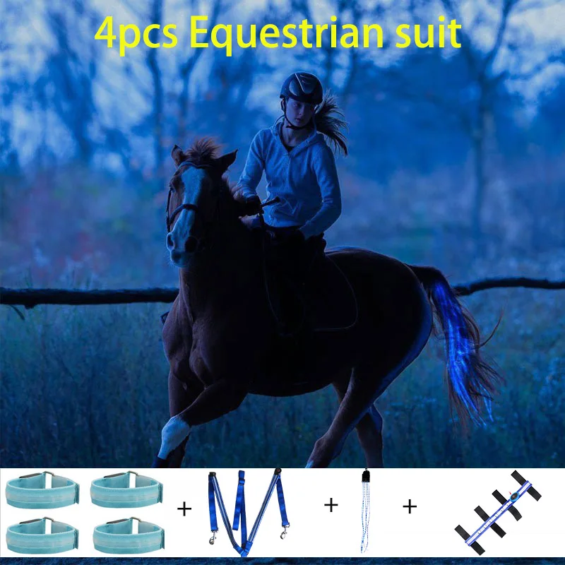 3 шт. светодиодный Конный хвост для ног на груди, ремни для верховой езды, светящиеся конные костюмы, ночное освещение, видимое Конное оборудование для конного спорта