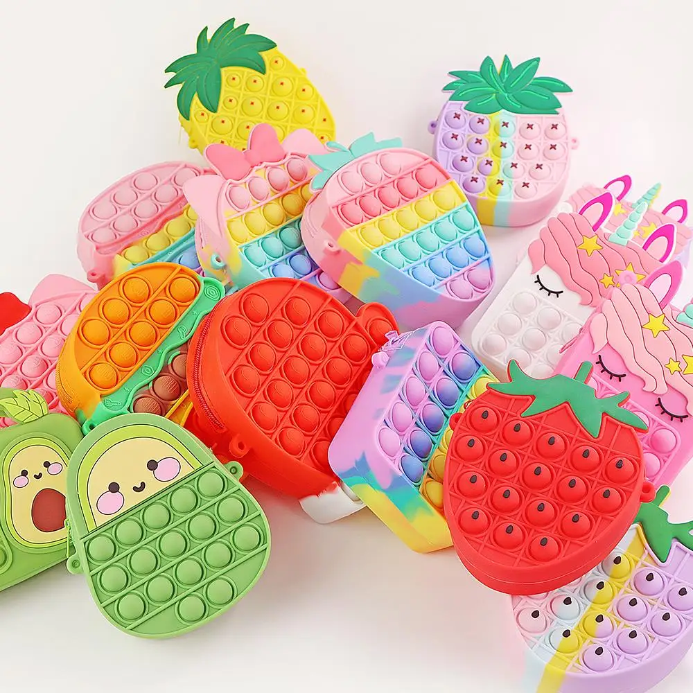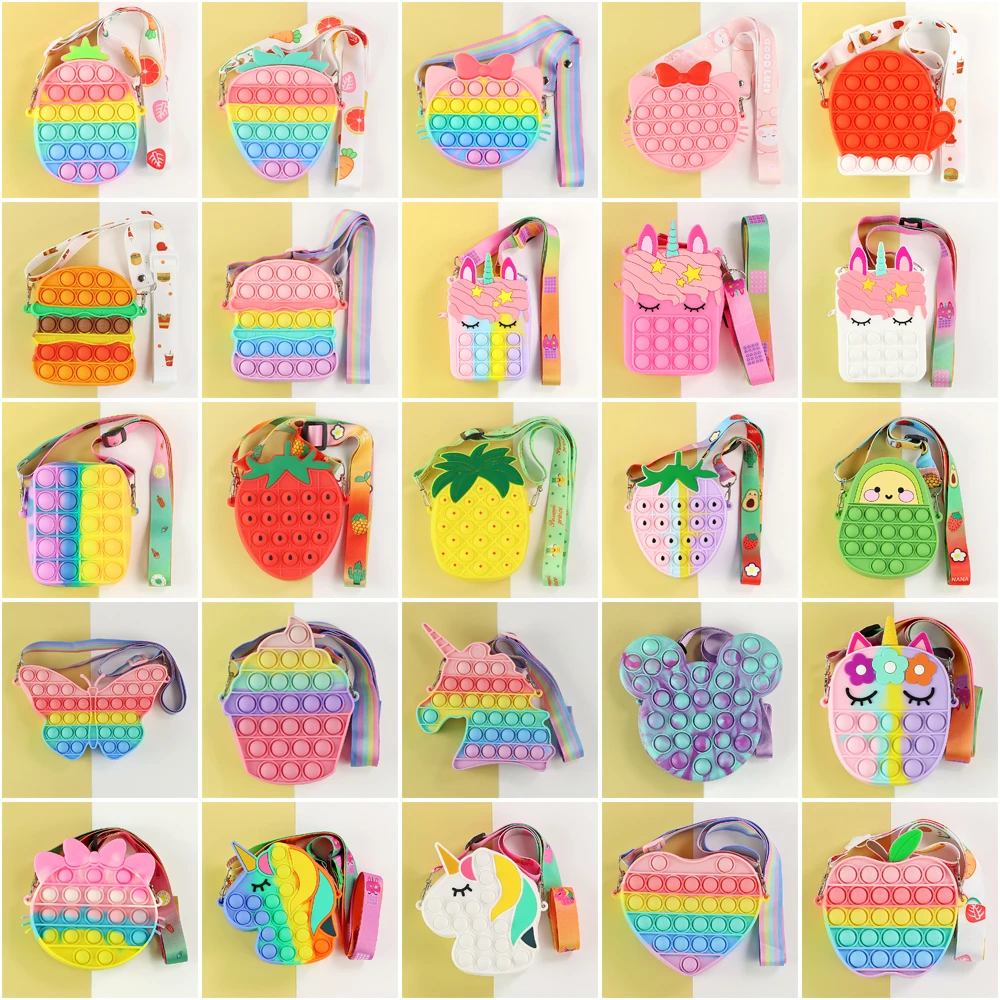 Радужная сумка с единорогом, игрушки, кошелек для монет, косметичка для детей, поп-пузырьки, антистресс, простой диммер, Рождественский подарок