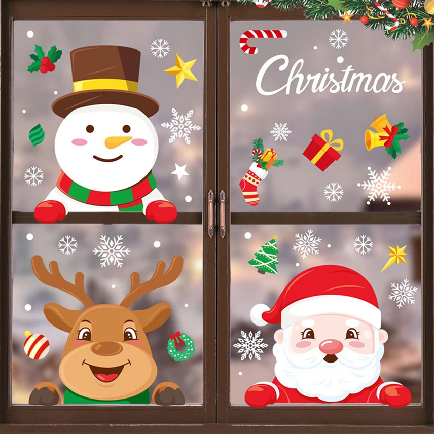 Наклейки на окна зима 2022 рождественские украшения Санта Клаус Снеговик Снежинка стеклянная Наклейка Наклейки для дома Новогодний 2022 Декор