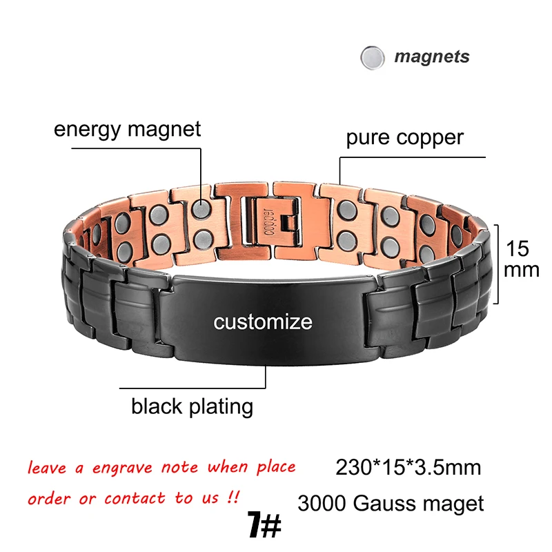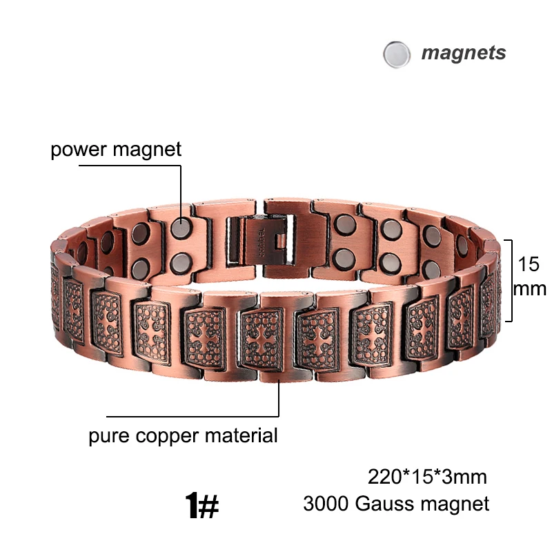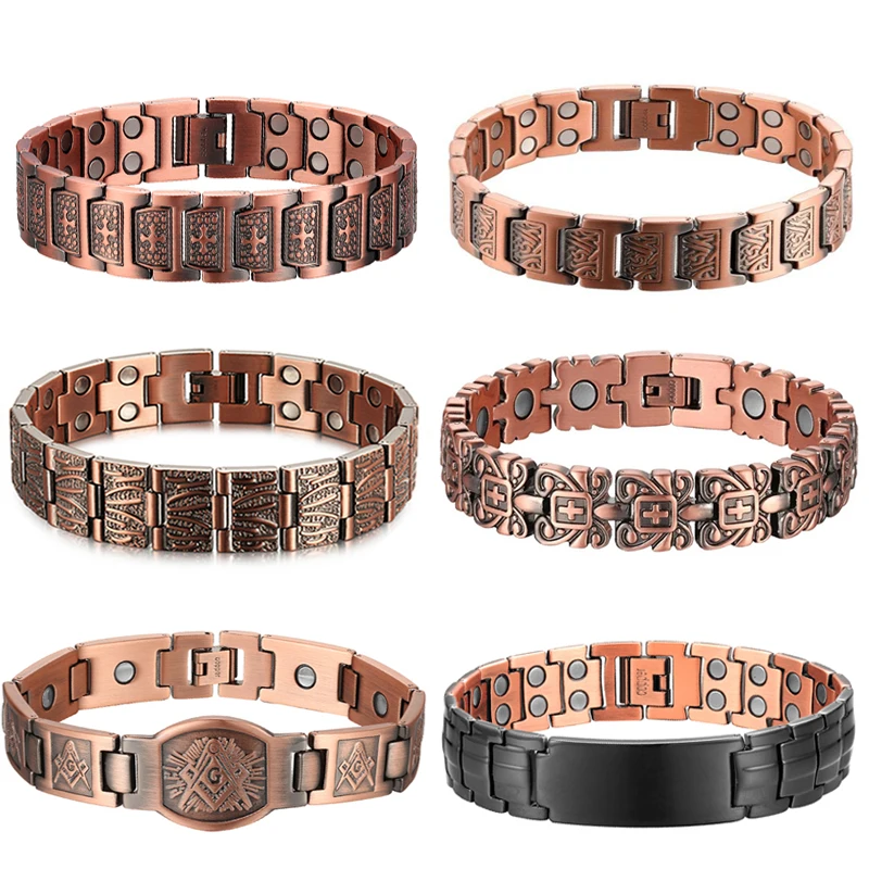 Мужской Магнитный Браслет для здоровья из чистой меди, энергетический браслет для мужчин, магниты для кровяного давления, браслеты, оптовая продажа