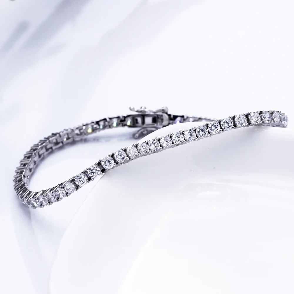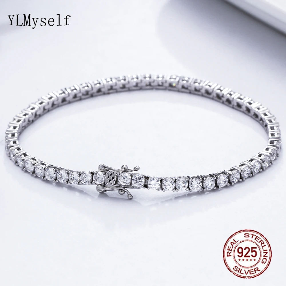 Браслет Теннисный из чистого серебра 14-21 см, ювелирная цепочка, ПАВЕ 3 мм, 5 А, CZ, потрясающая цепочка в стиле хип-хоп, рок, настоящие ювелирные изделия 925