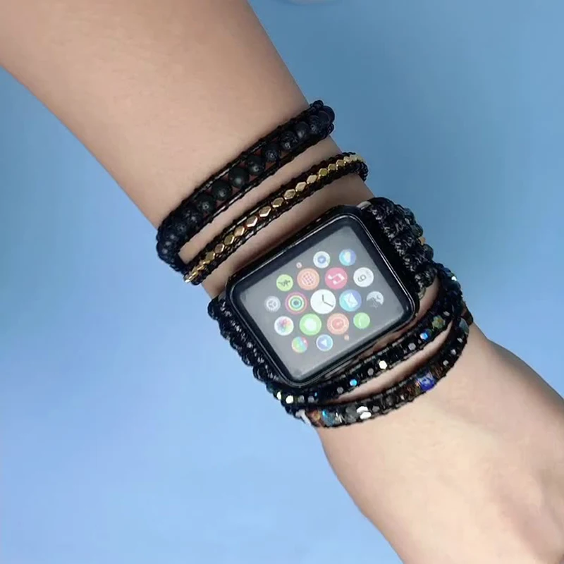 Ремешок для часов OAIITE из натурального лавового камня для Apple Watch, женские и мужские богемные ремешки для часов с бусинами, браслеты с пряжкой Life of Tree