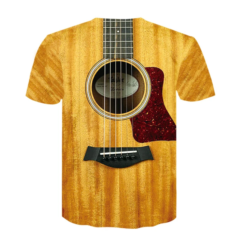Новая мужская модная футболка с 3D-принтом гитары, с короткими рука...