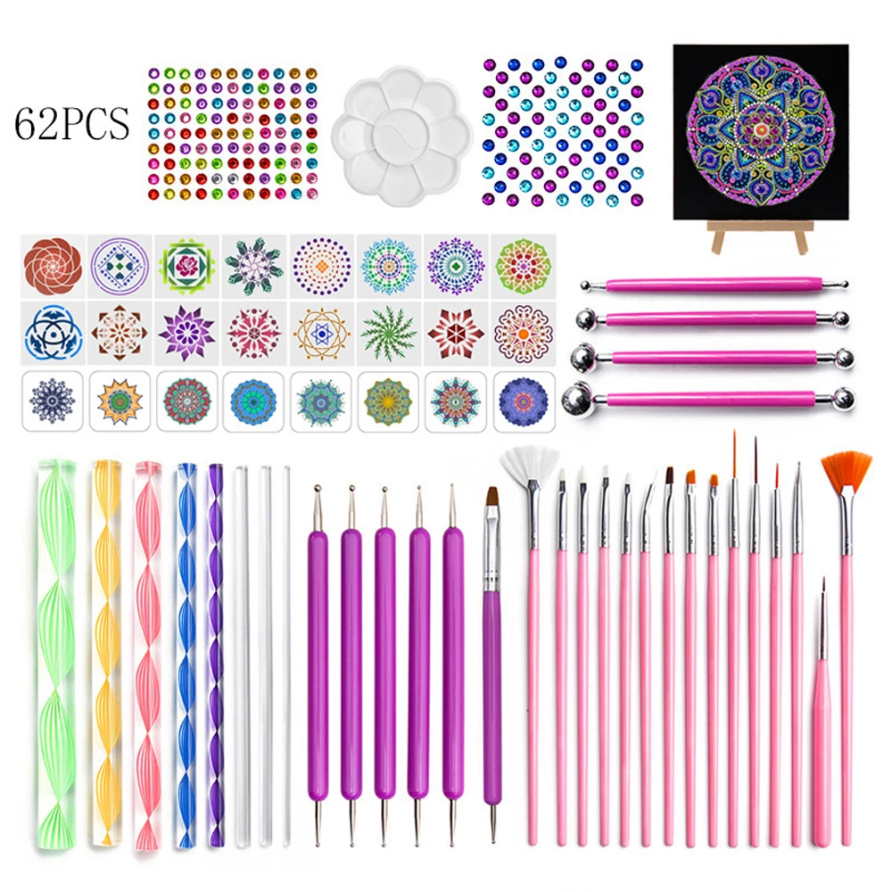 62 шт.компл. инструмент для точек Мандала для рисования ногтевого дизайна кисть для точек акриловые стержни ручка для рисования камни инструменты для страз и кристаллов