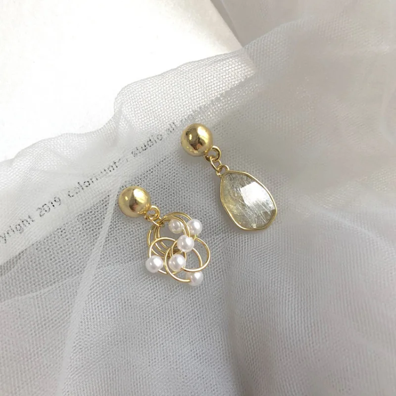 Серьги женские Асимметричные из серебра 2021 пробы с жемчугом