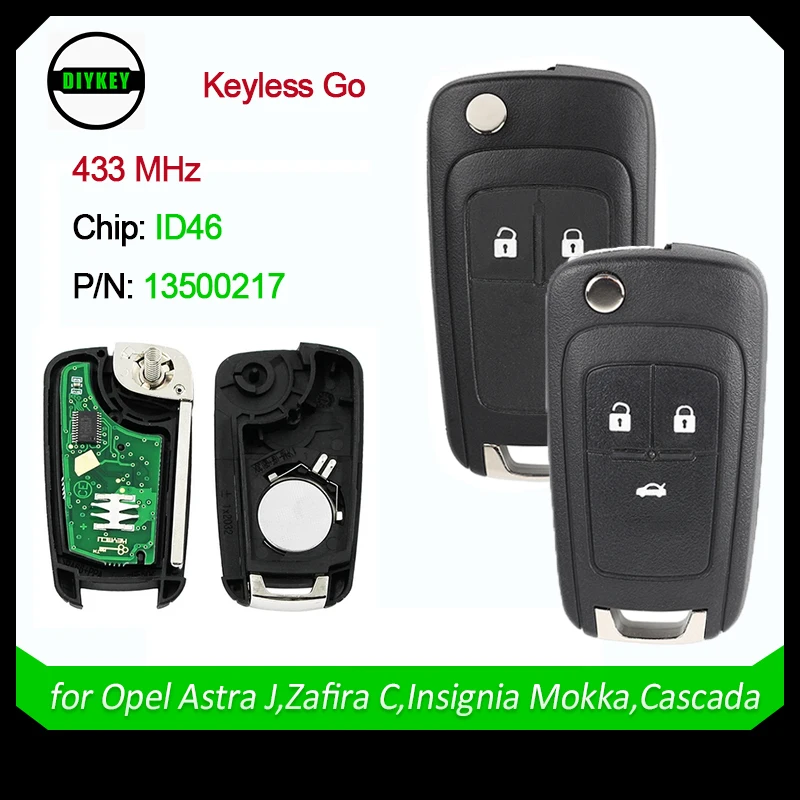 DIYKEY сменный ключ Keyless go с дистанционным управлением 433 МГц ID46 для Opel/Vauxhall Astra J,