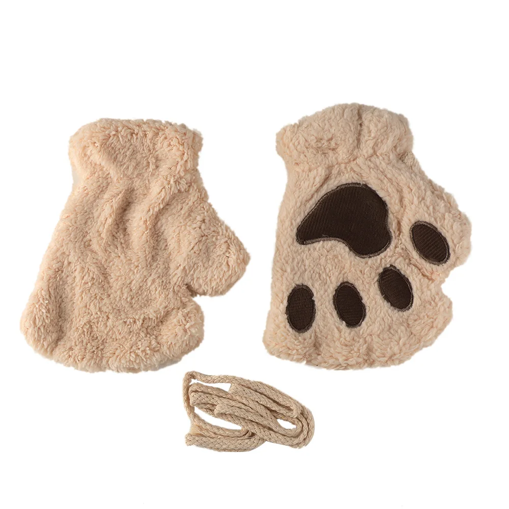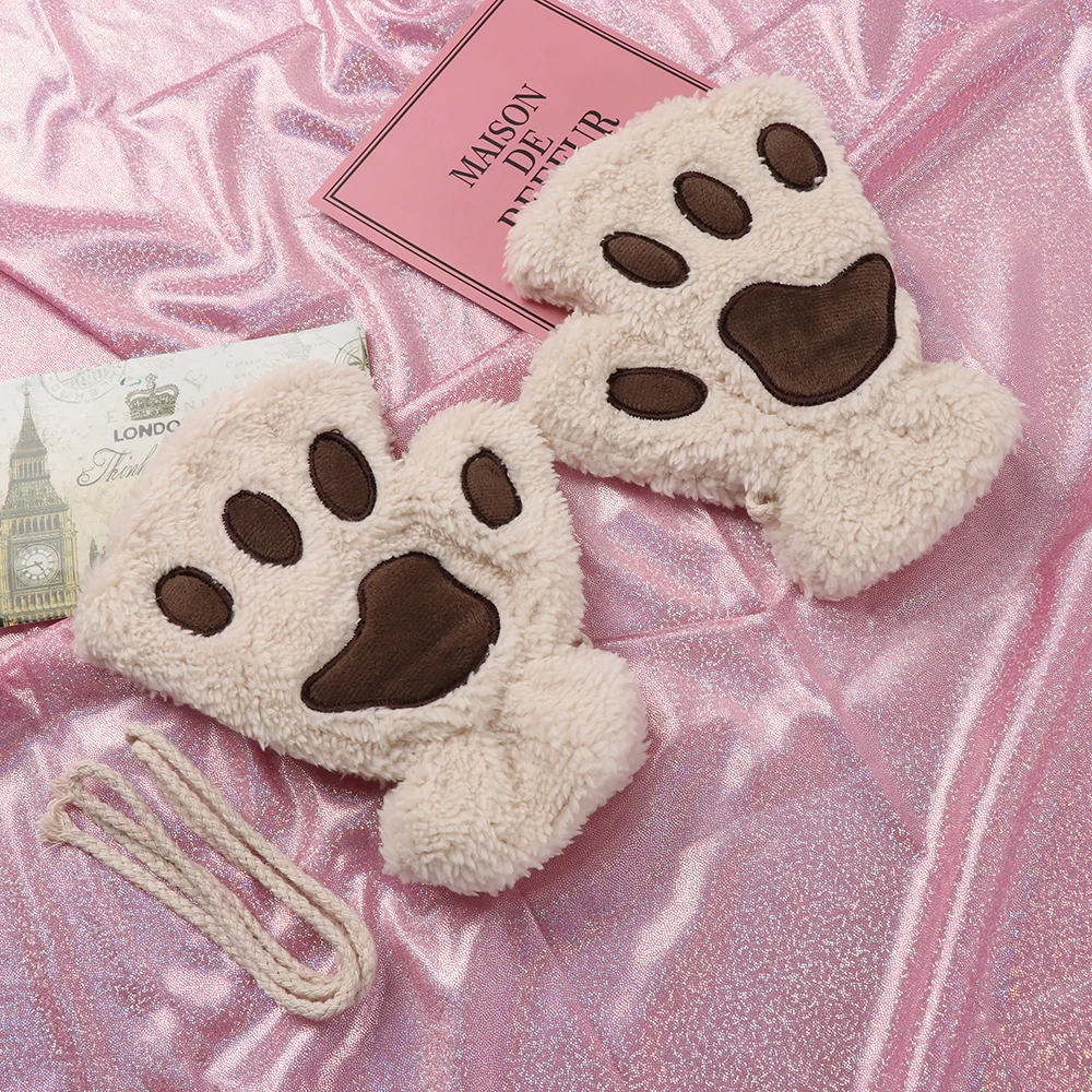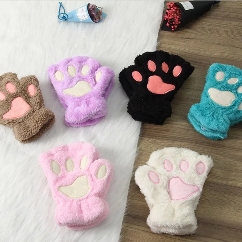 Новинка, женские милые полупальцы, искусственные плюшевые варежки, теплые мягкие плюшевые короткие безпальцевые пушистые перчатки с медведем, кошкой, костюм, подарок Вечерние