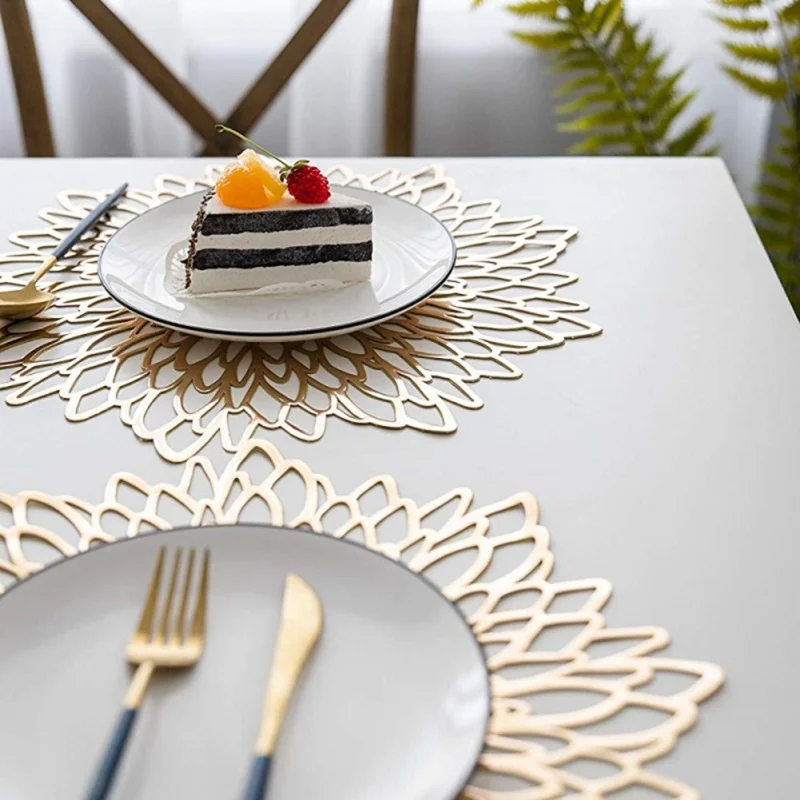 Салфетки из ПВХ, выдолбленные, с золотым тиснением, в форме цветка ...