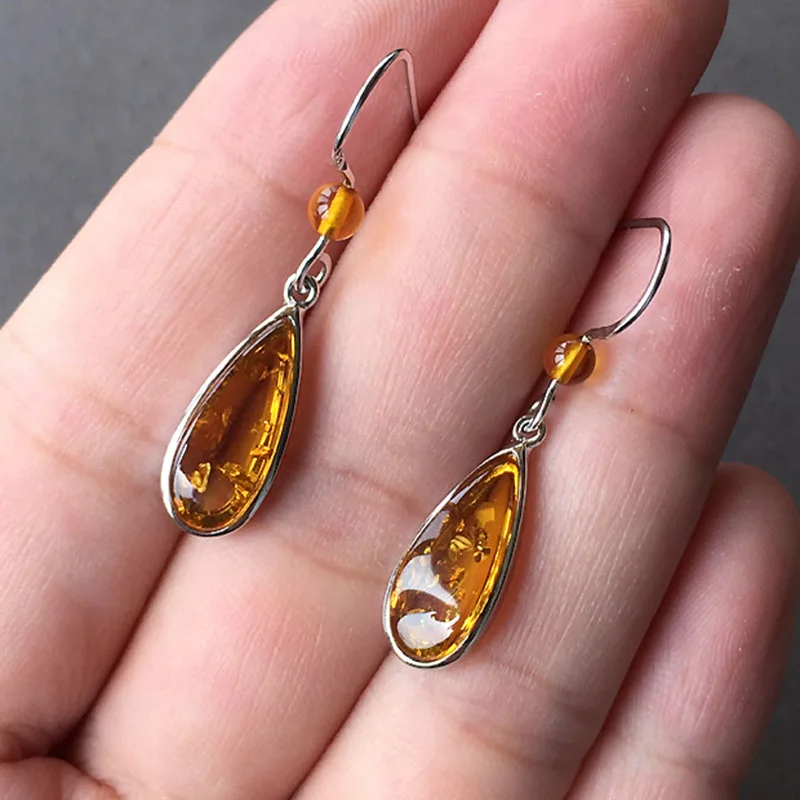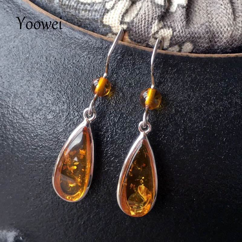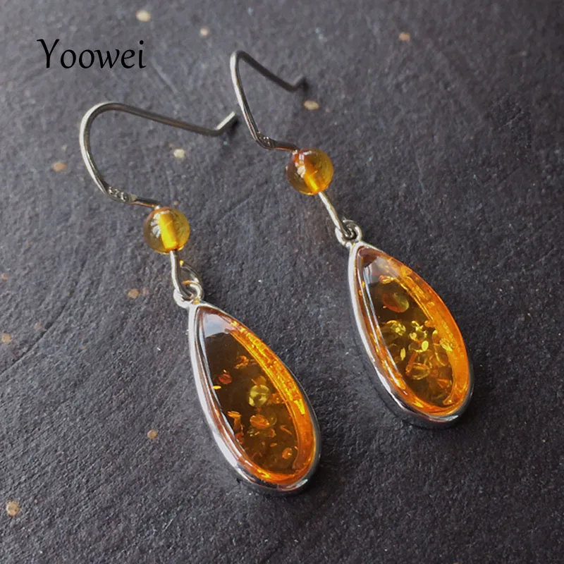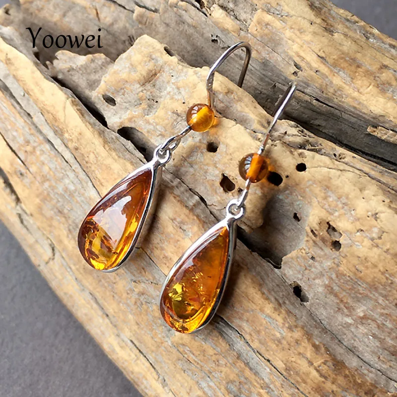 Серьги-подвески Yoowei из натурального Балтийского янтаря, женские подарки подруге и маме, новые модные женские простые цветочные ювелирные изделия в виде амбара, аксессуары