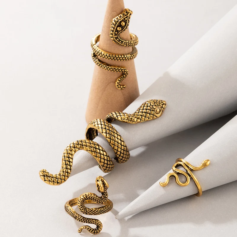 4 шт.компл. Винтажное кольцо из металлического сплава в виде змеи