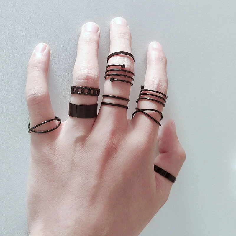 Набор колец в стиле хип-хоп для женщин, простые кольца на палец для девушек, трендовые аксессуары, ювелирные изделия, подарки для вечеринок, 2021