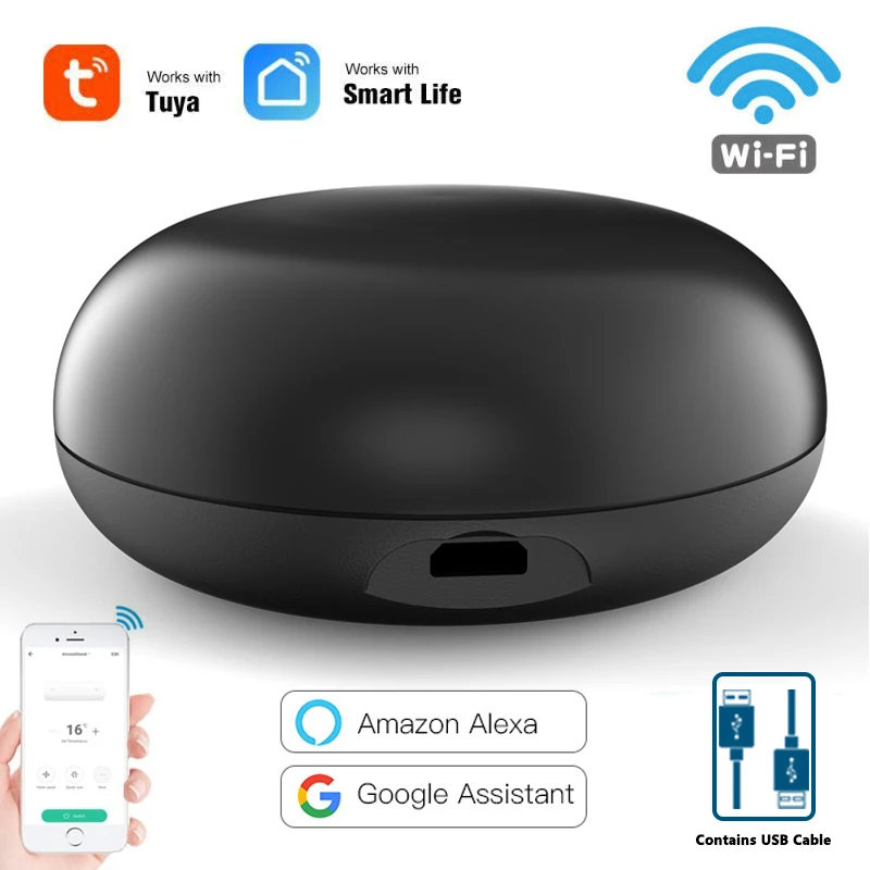 Совместим с Alexa/Echo, Google Home для голосового управления вашим телевизором, STB, кондиционером и вентиляторами. Устройство поддерживает только 2,4G WiFi.