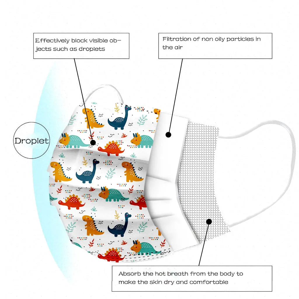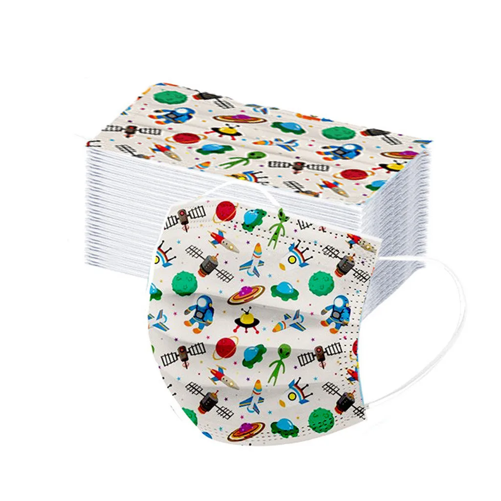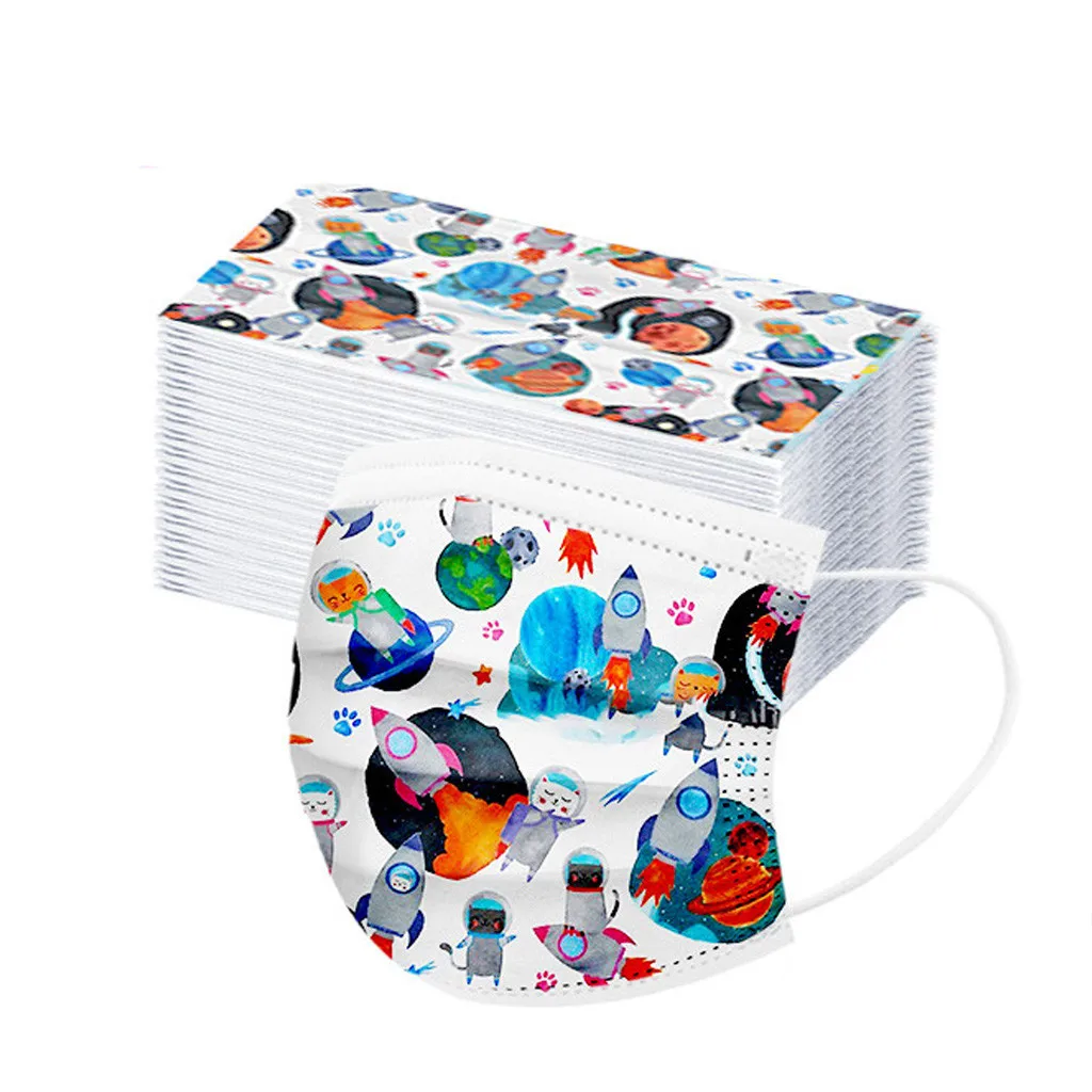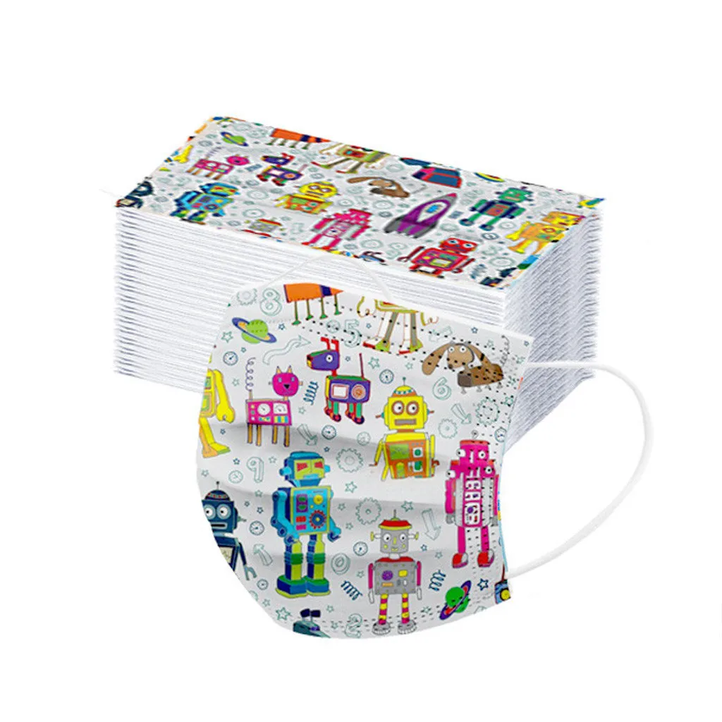 Детские одноразовые маски для лица 50 шт 3 слоя для защиты дышащей мультяшной печати