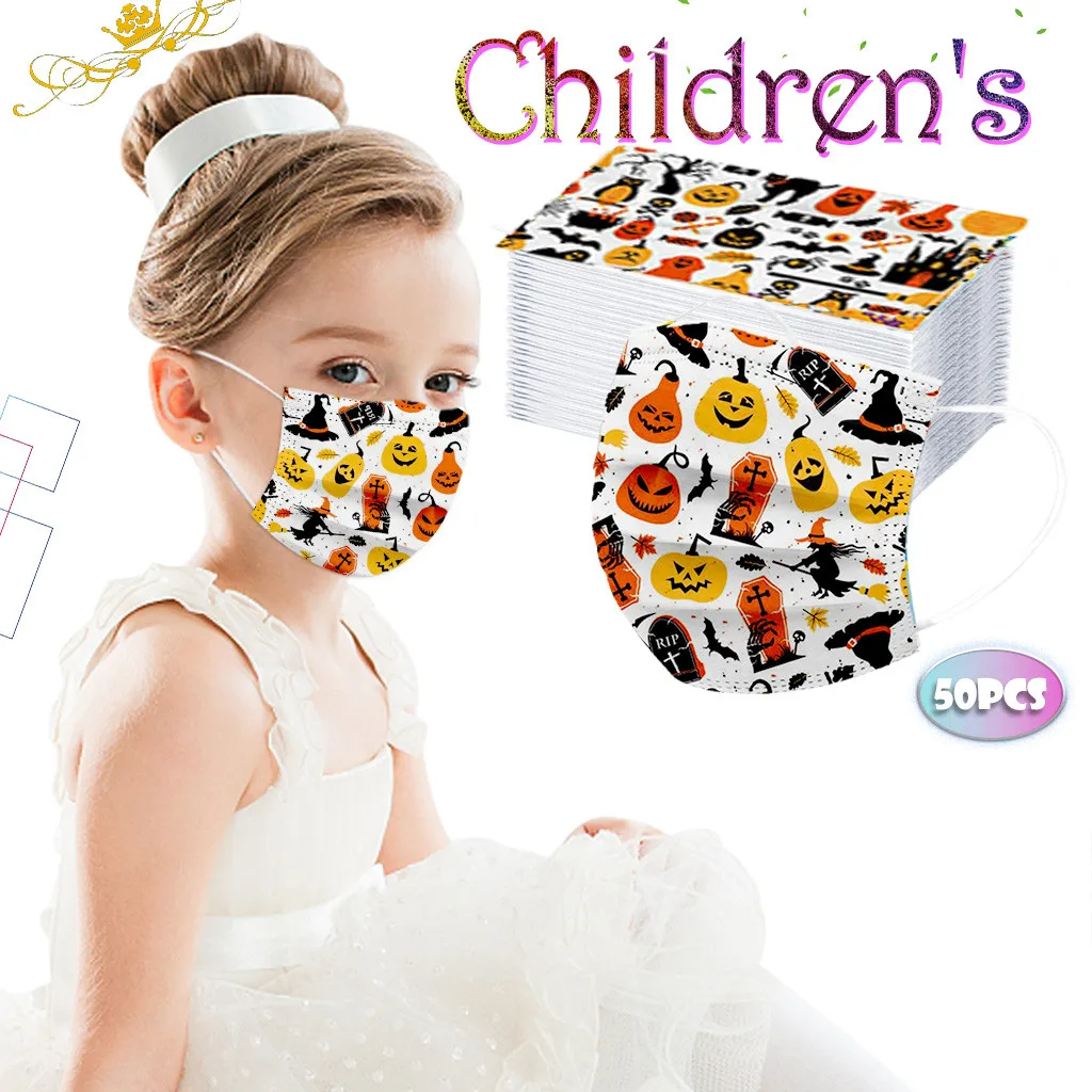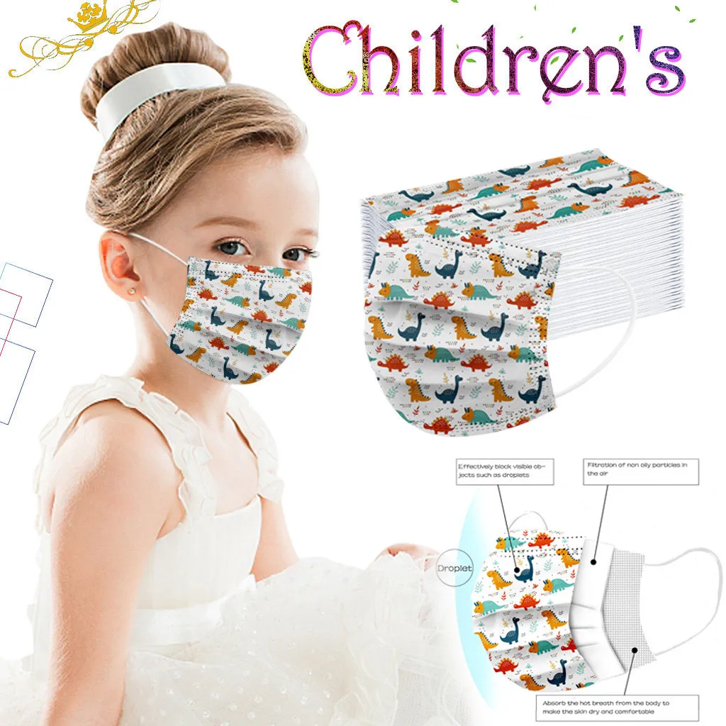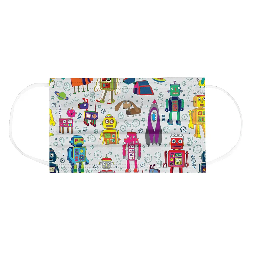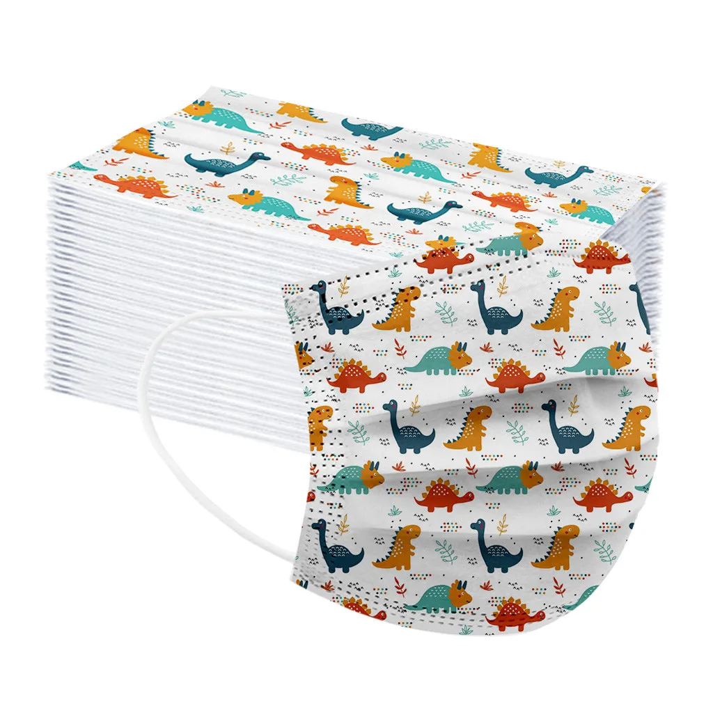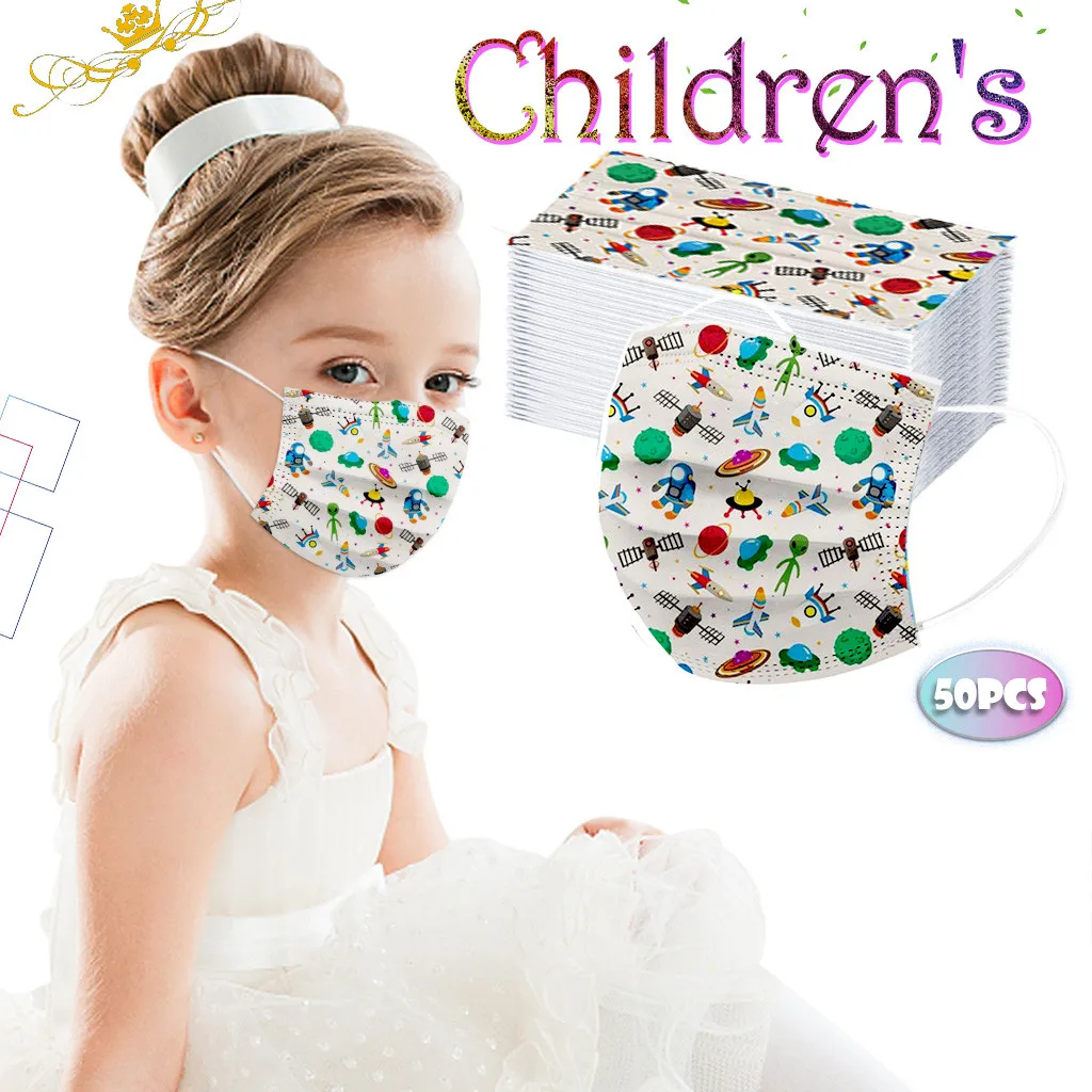 Детские одноразовые маски для лица 50 шт 3 слоя для защиты дышащей мультяшной печати