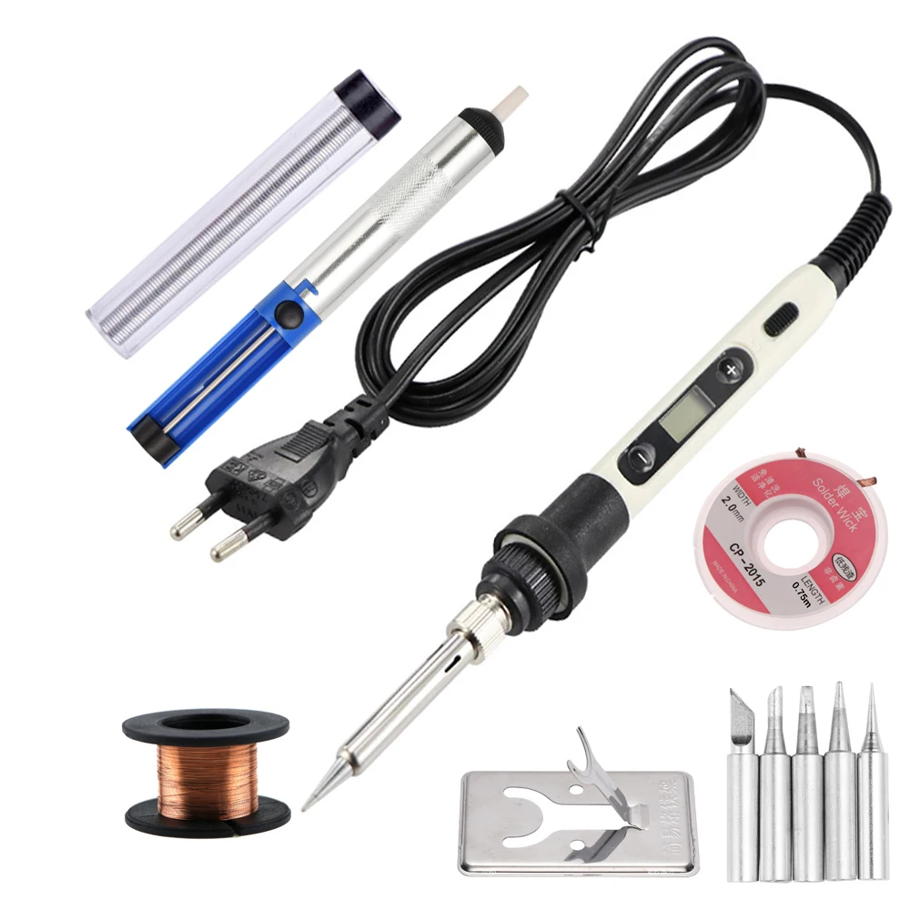 1 шт. 80 Вт ЖК-паяльник (220 В штепсельная вилка ЕС/110 В штепсельная вилка США)5 шт. наконечники паяльника (I / B / K /2.4D / 3C)1 шт. подставка для пайки из нержавеющей стали1 шт. губка