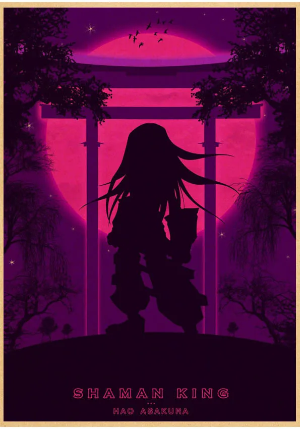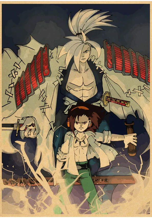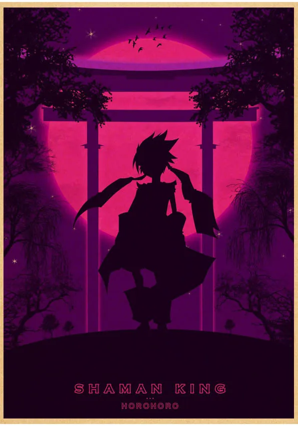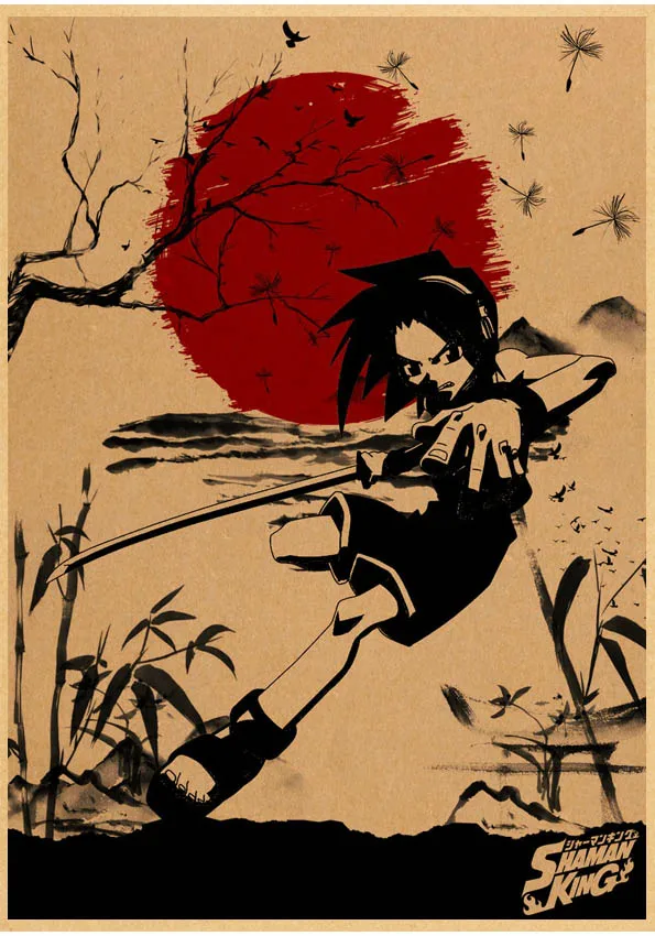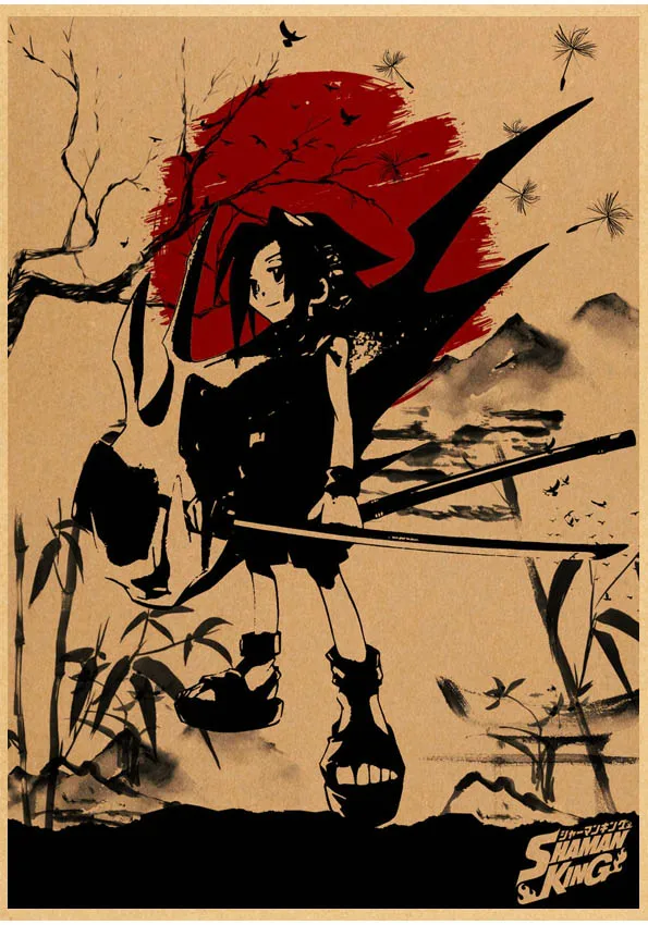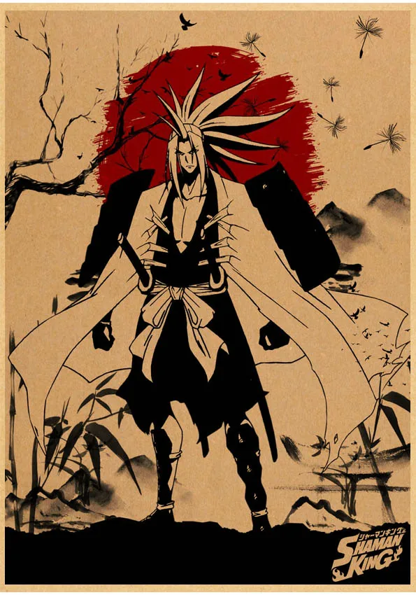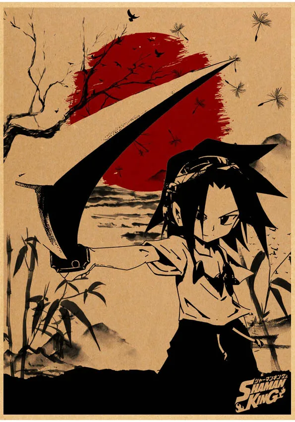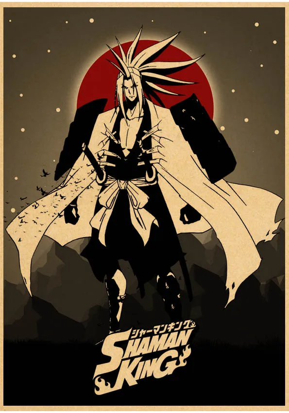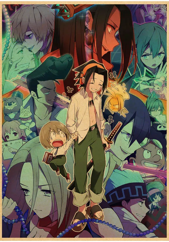 Популярное японское аниме постер Shaman King в стиле ретро, сшитый постер, настенные наклейки для гостиной, домашнее художественное украшение o561