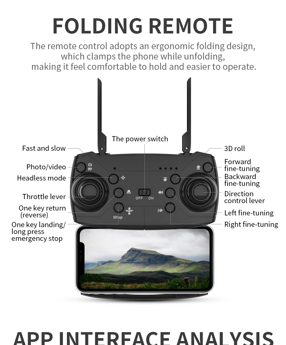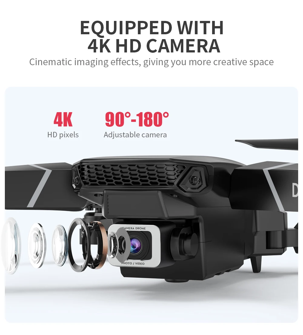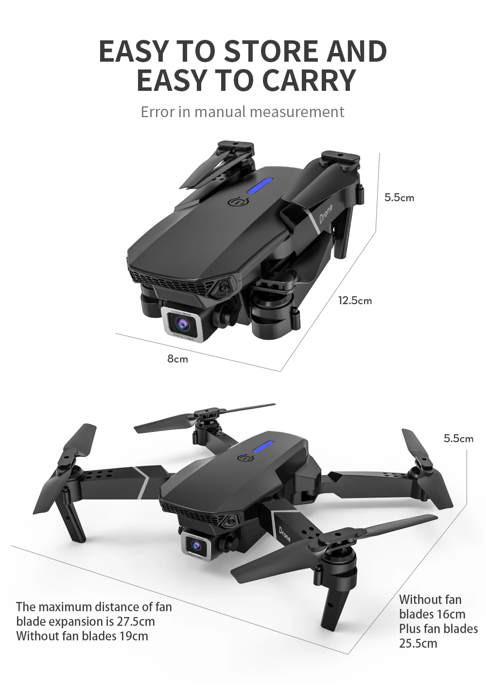 Профессиональный мини-Дрон E88 с Wi-Fi, HD, 4K, с камерой, режимом ожидания, высотой, складной, дистанционным управлением, летательный вертолет
