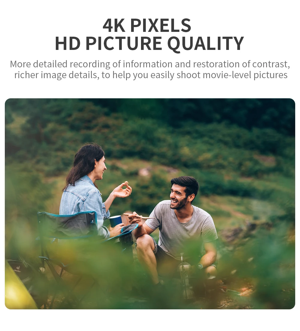 -Есть 2 камеры на выбор. С широкоугольной камерой 1080P или 4K обеспечивают широкий диапазон изображения и видео.