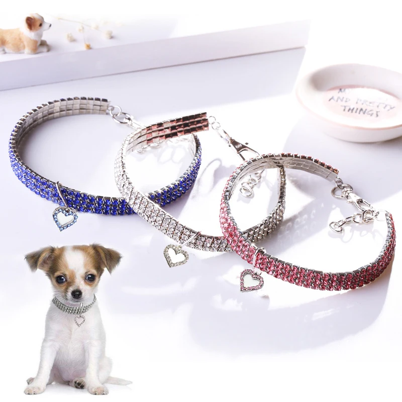 Изысканный Блестящий собачий ошейник с кристаллами в форме сердца Алмазный щенок ожерелье для питомца блестящее ожерелье ошейник для питомцев