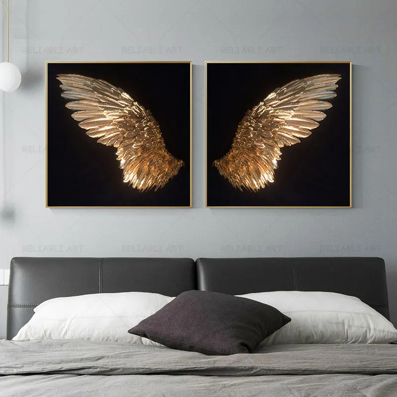 Скандинавские абстрактные золотые крылья, холст, картина, искусство, золотые перья, Скандинавия, настенные картины для гостиной, Декор, куадросы