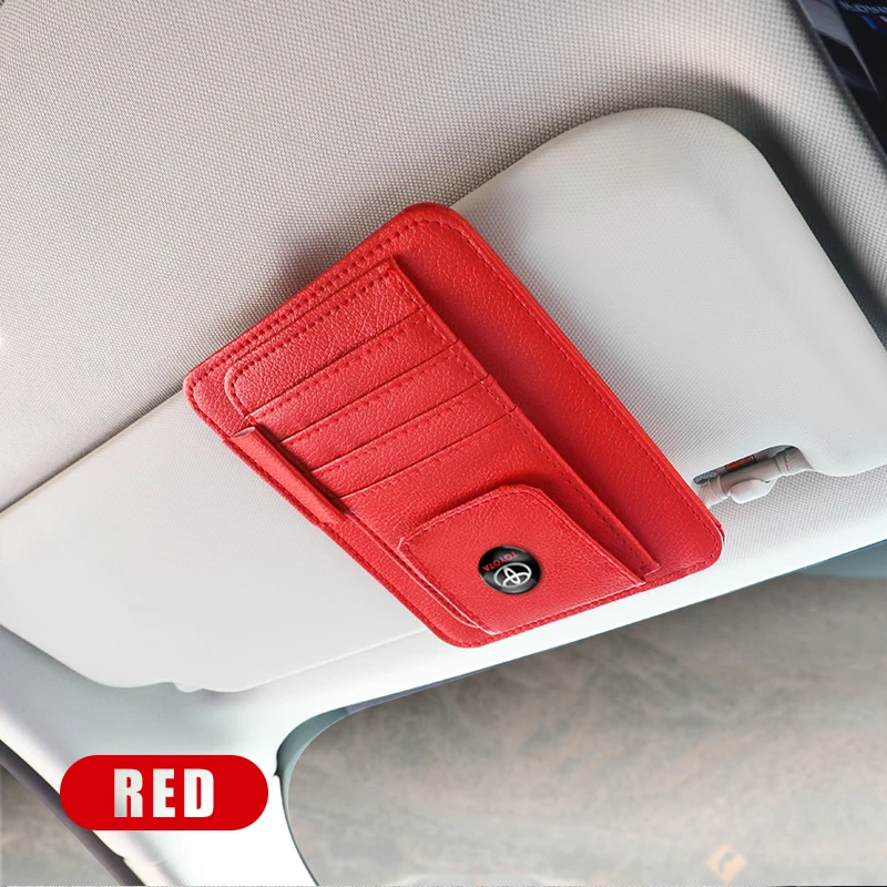 Солнцезащитный козырек для автомобиля из искусственной кожи, солнцезащитный козырек, сумка для хранения билетной карты для Toyota Corolla Yaris Chr Auris Rav4 Prius Prado Avensis Verso Sienna Avalon Camry Fortuner Highlander Mark-X Mirai Prius Hillix Hllix Picanto, супер аксессуары