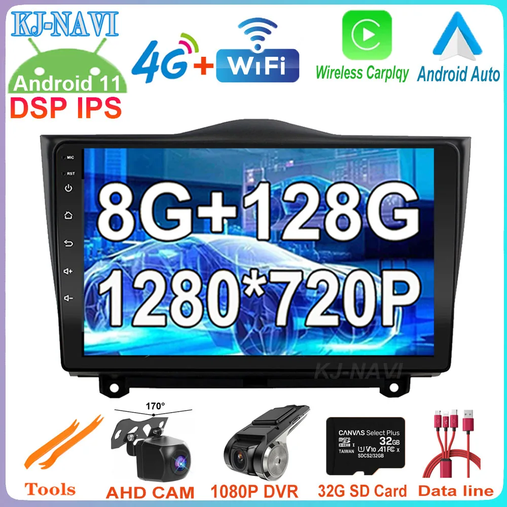 Автомобильный мультимедийный плеер, 8 + 128 ГБ, Android 11, 1280*72...