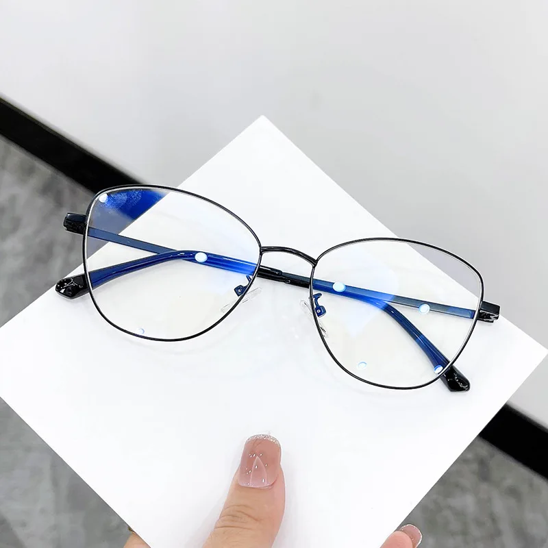 Модные Офисные очки кошачий глаз с защитой от синего света, Большие оптические очки, компьютерные женские игровые очки с защитой от синего света и металлической оправой