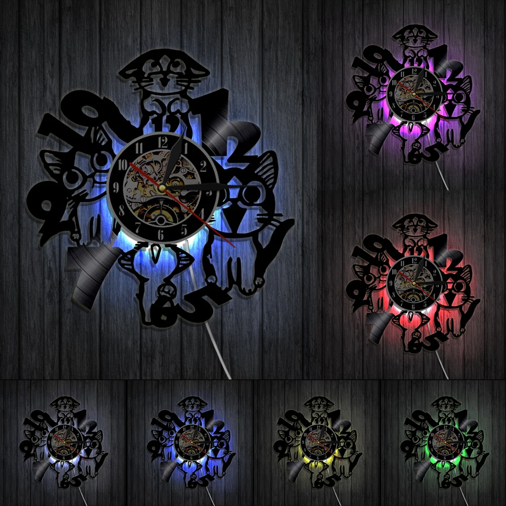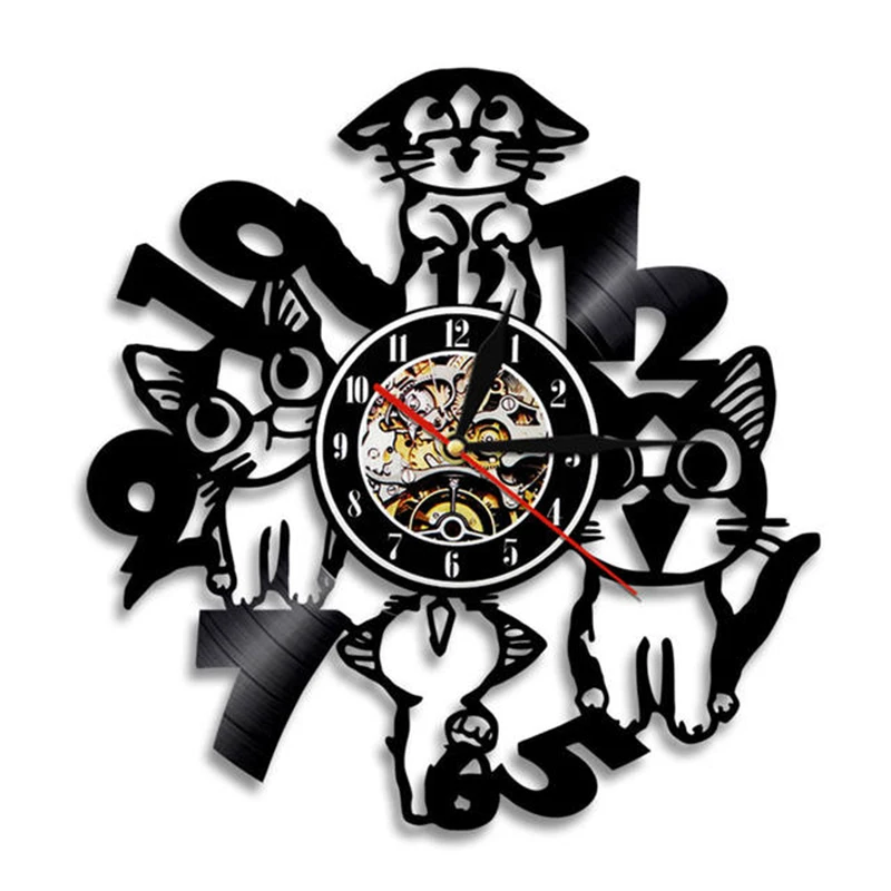 Настенные часы с милым котом, 3D Декоративные Современные наручные часы с виниловой записью котенка, забавные украшения для комнаты ручной работы