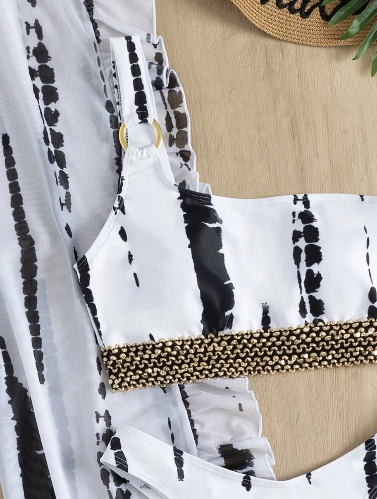 Сексуальный комплект бикини на одно плечо из 3 предметов, 2022 сетчатый длинный женский купальник, женский купальник с принтом, Бразильский купальный костюм