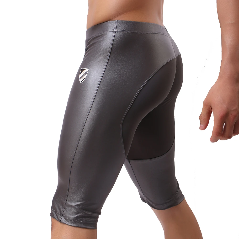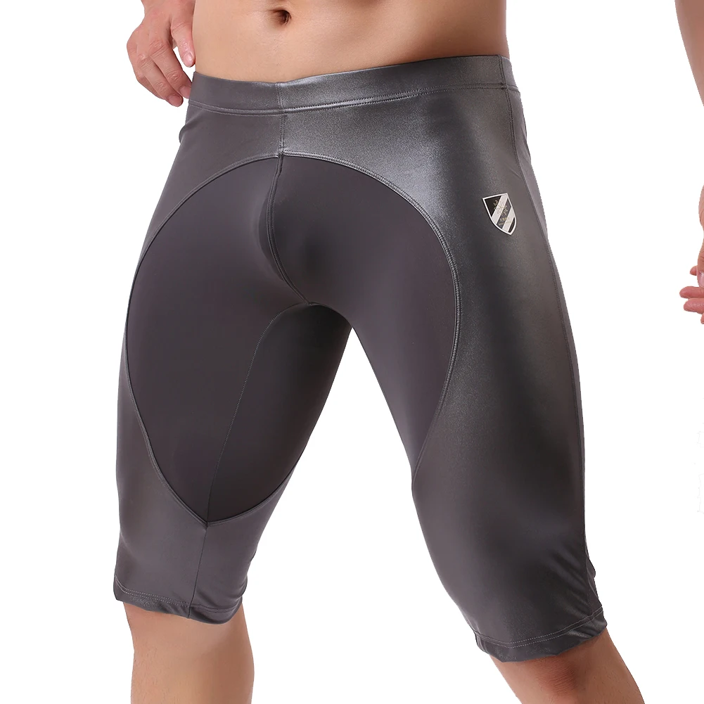 Мужские пляжные шорты до колена, трико из искусственной кожи, Одежда для пляжа, плавки, шорты для фитнеса